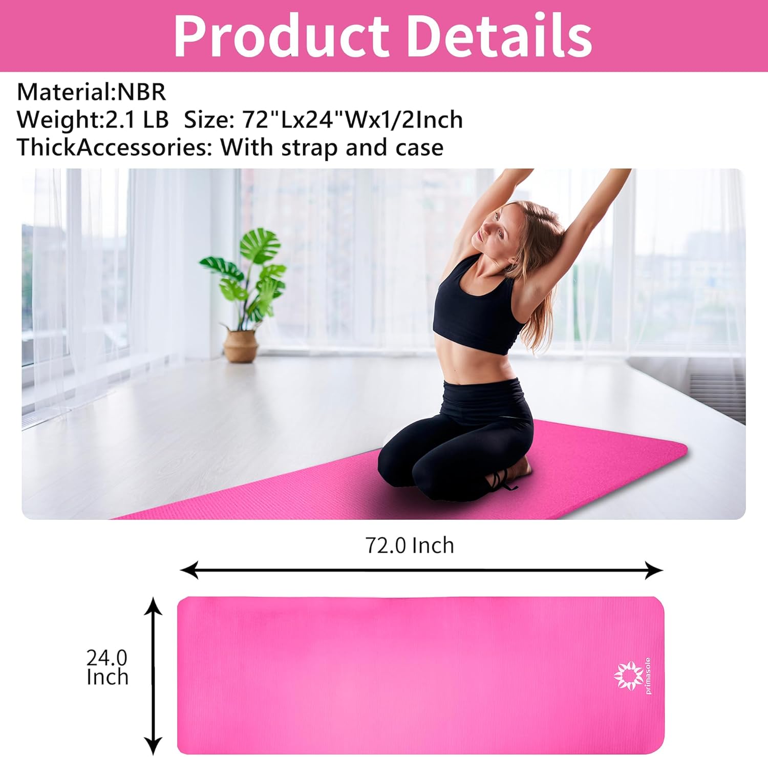 Primasole Thick Yoga Mat, 1/2-Inch Extra Thick NBR…