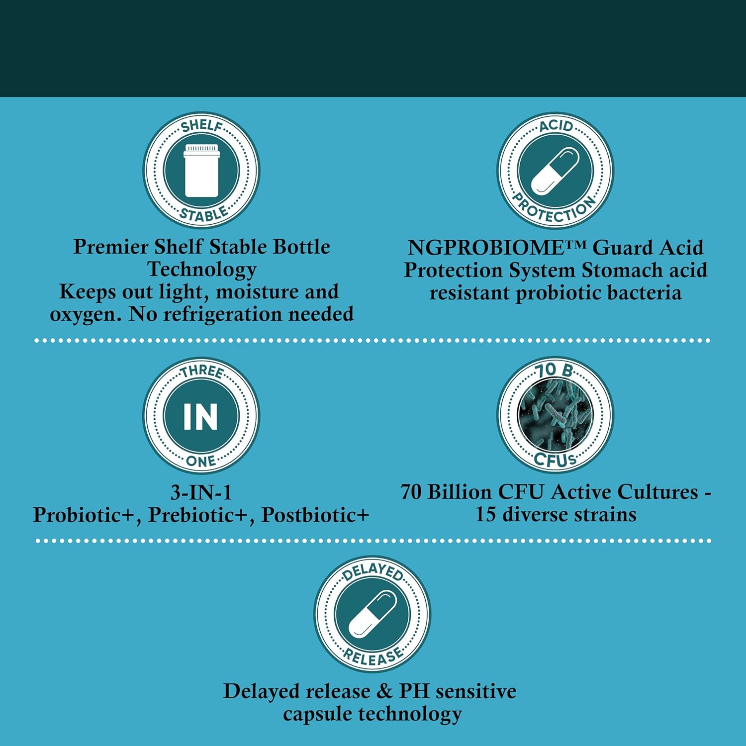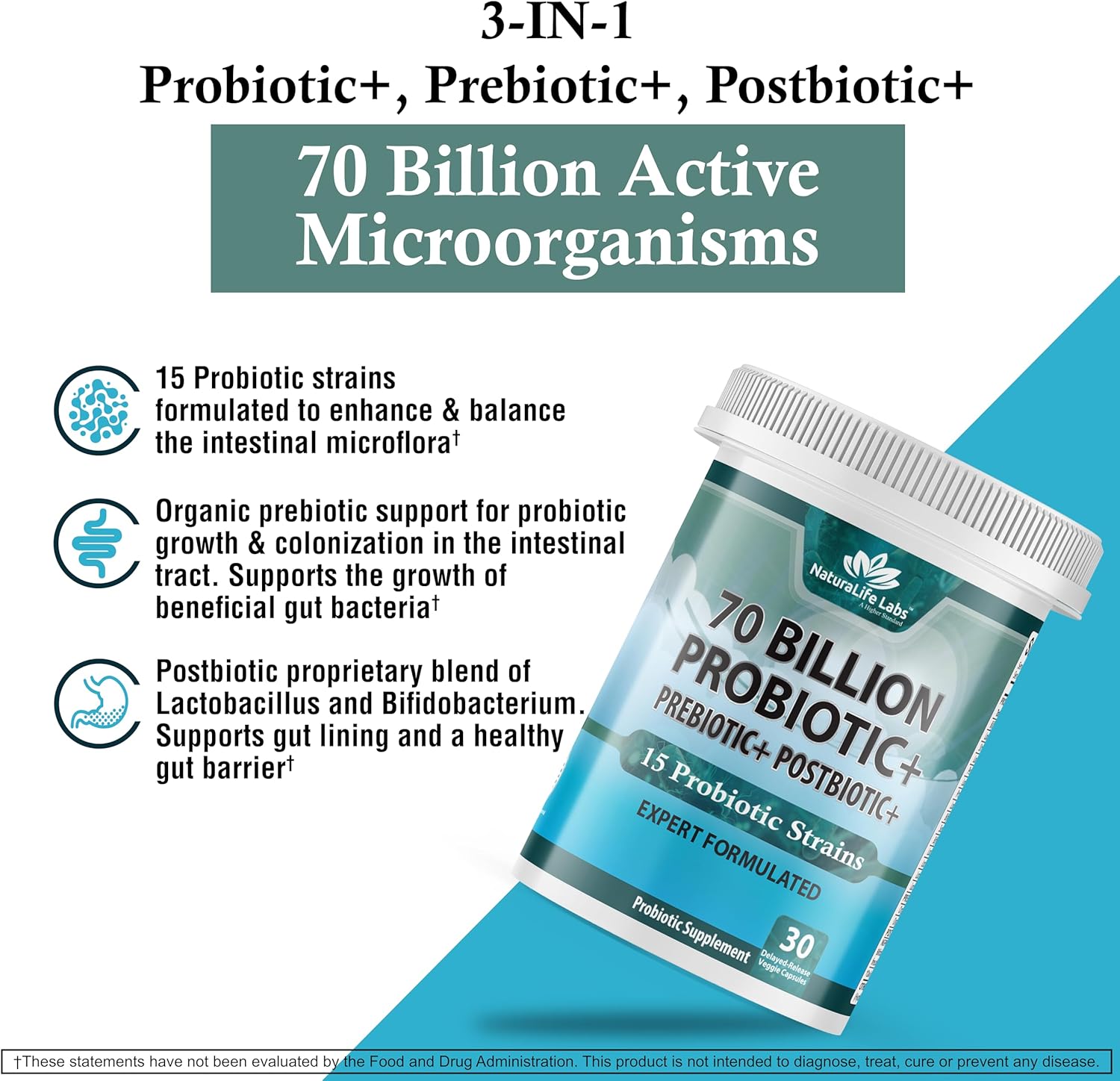 ✔️3-IN-1 70 Billion Probiotic+, Prebiotic+, Postbiotic+. Carefully formulated by experts