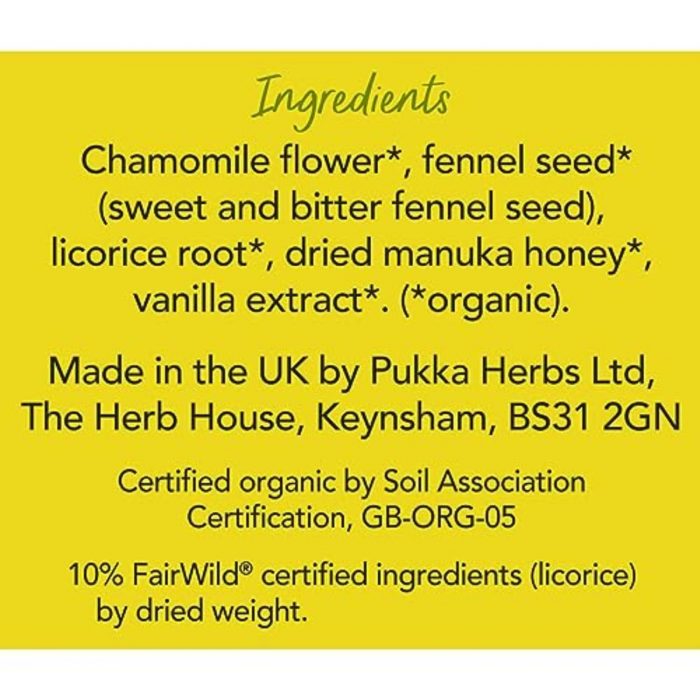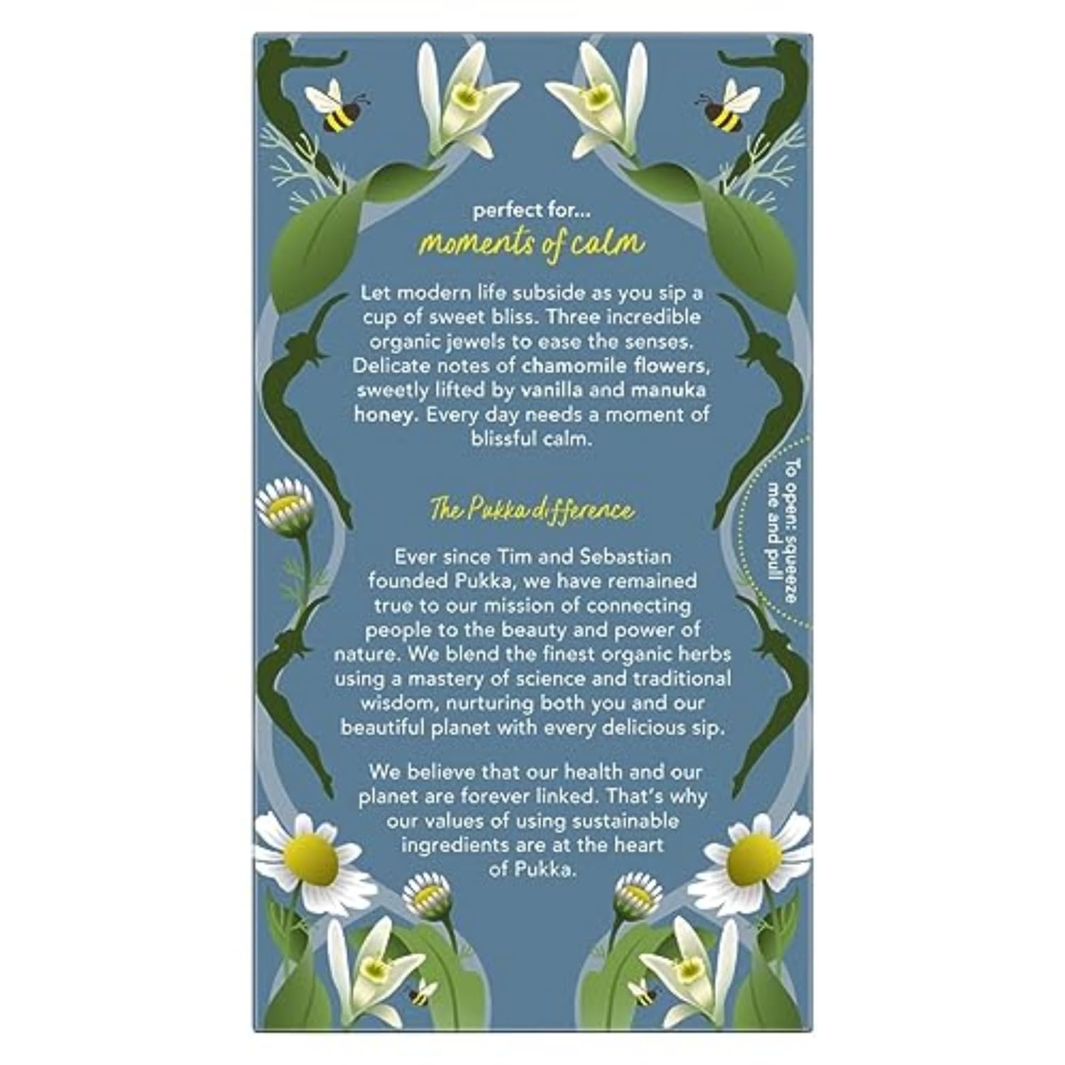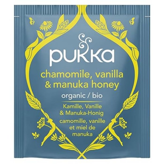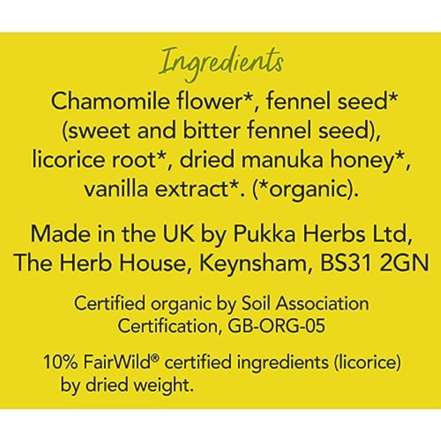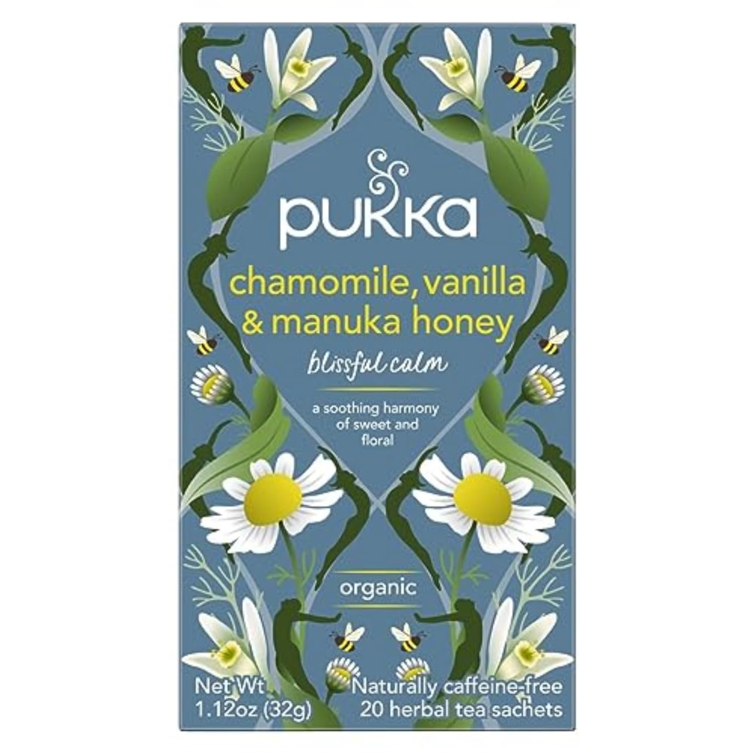 Pukka Chamomile, Vanilla & Manuka Honey Herbal Tea, Caffeine-Free, Fair Trade, Kosher, USDA Certified Organic, Non-GMO, 20 Tea Sachets (Pack of 4)