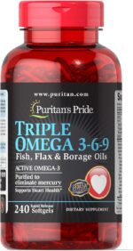 SUPPORTS HEART HEALTH: Puritan’s Pride Premium Triple Omega 3-6-9, 240 count is formulated to support cardiovascular wellness by supporting heart health and promoting efficient blood circulation*