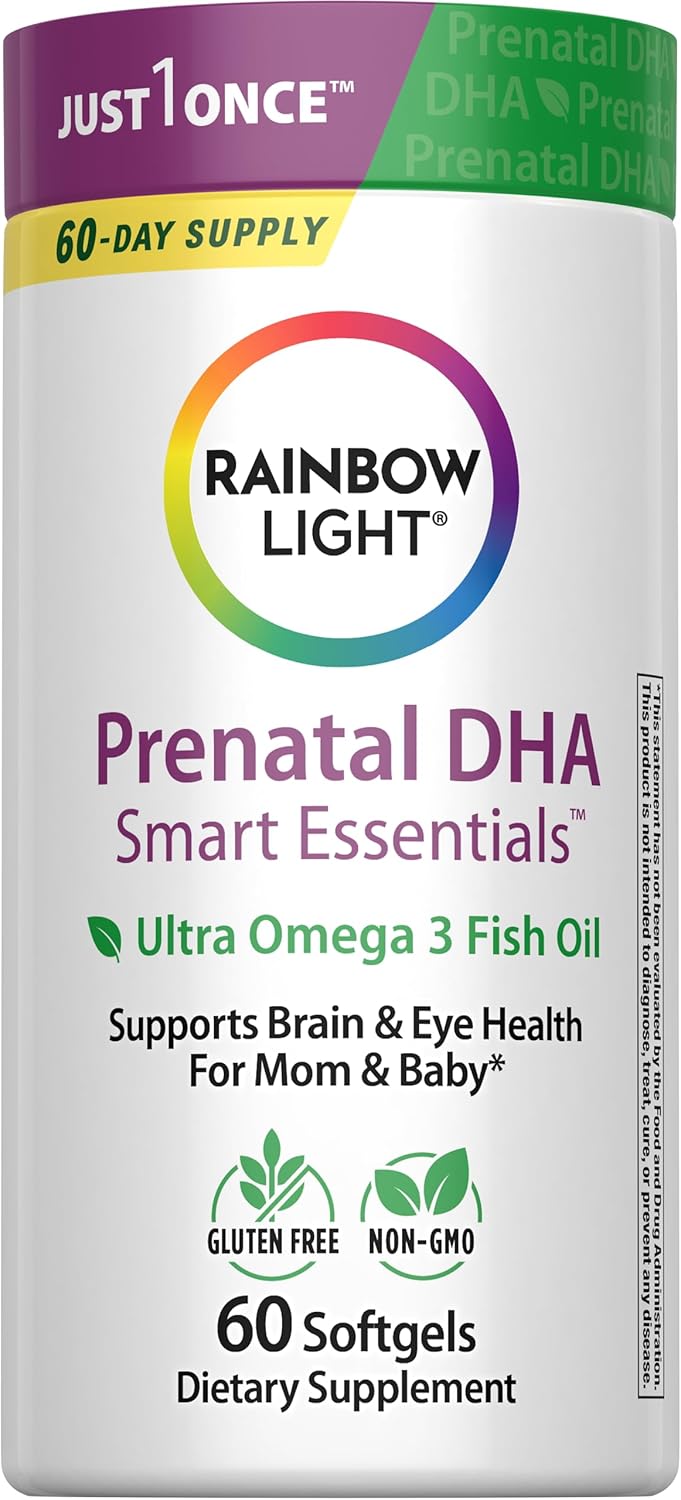 Rainbow Light Prenatal Vitamin, Omega-3 Fatty Acids & Prenatal DHA, Multivitamin for Women, Gluten Free, Promotes Baby’s Brain Development & Eye Health, Easy To Digest, 60 Softgels