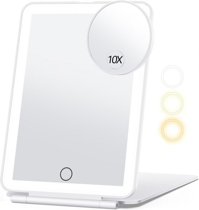 3 Color lighting; 3 modes of light allow you to see your makeup changes under different lights. White light is 98% similar to sunlight, suitable for going out, natural light is suitable for office use, yellow light is suitable for parties, dinner
