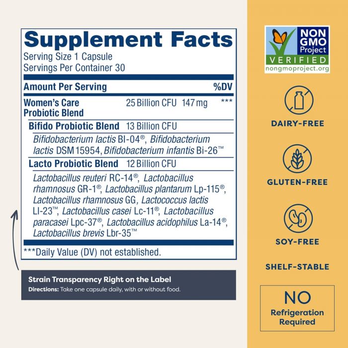 GLOBAL INGREDIENTS: Created with the highest quality global ingredients, this women’s probiotic has a Non-GMO Project Verified formula that is gluten-free, dairy-free and soy-free