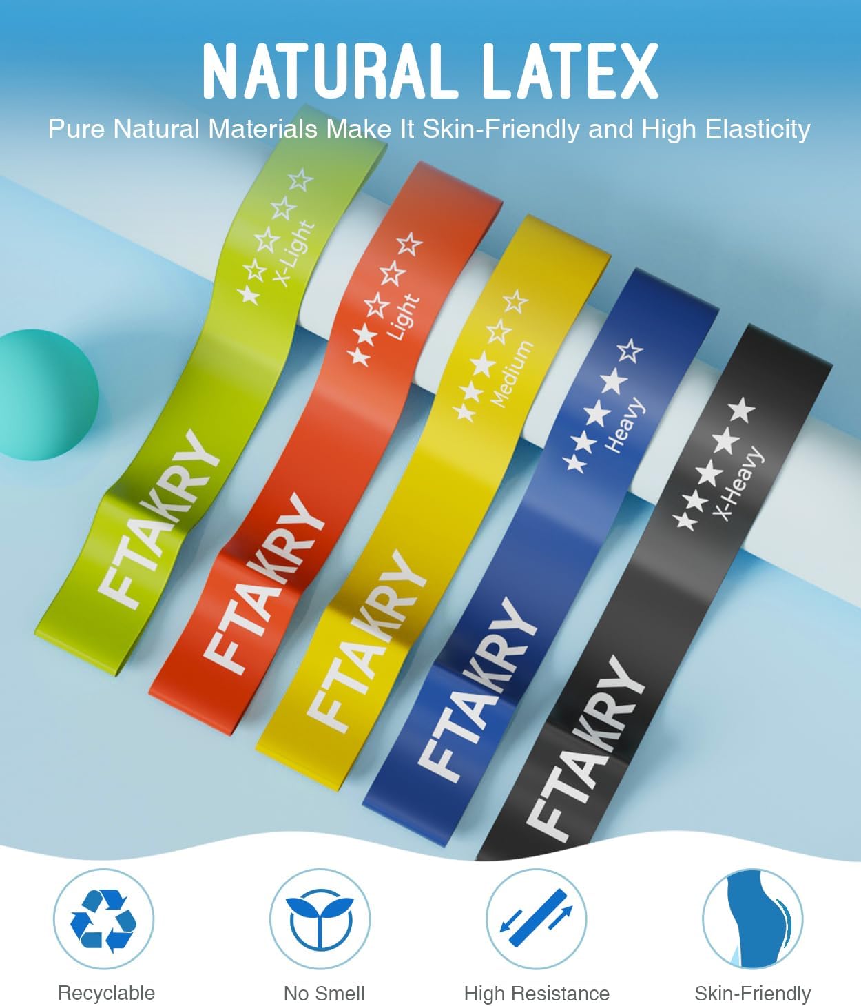 【What’s Included】Resistance Bands Set (5 natural latex resistance bands of different levels, 1 workout guide and 1 carry bag)