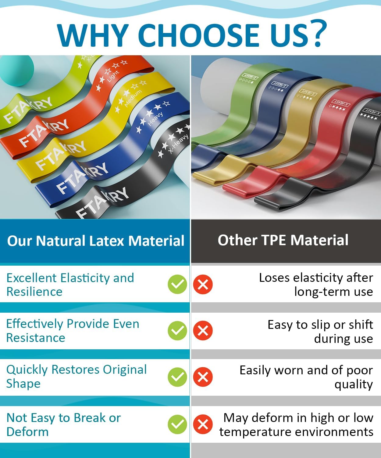 【Premium Material】The exercise bands are made of high-quality natural latex, which has excellent elasticity and resilience, allowing it to effectively provide even resistance and quickly return to its original shape after use.