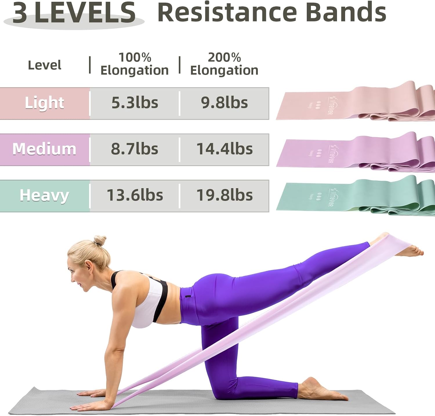 3-Level Resistance Set: Each band in this 3-color set represents a different resistance level. This variety allows users to progressively increase the intensity of their workouts or choose the right level for different exercises.