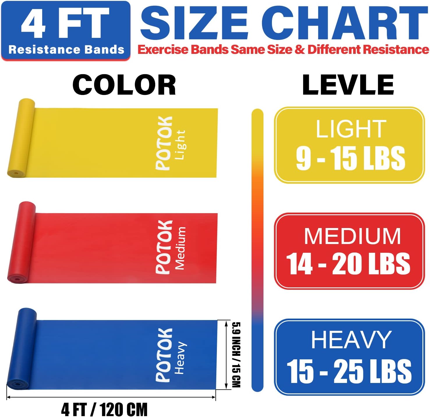 DIFFERENT LEVEL RESISTANCE — Yellow band(Light, 0.35mm), Red band(Medium, 0.45mm), Blue band(Heavy, 0.55mm)