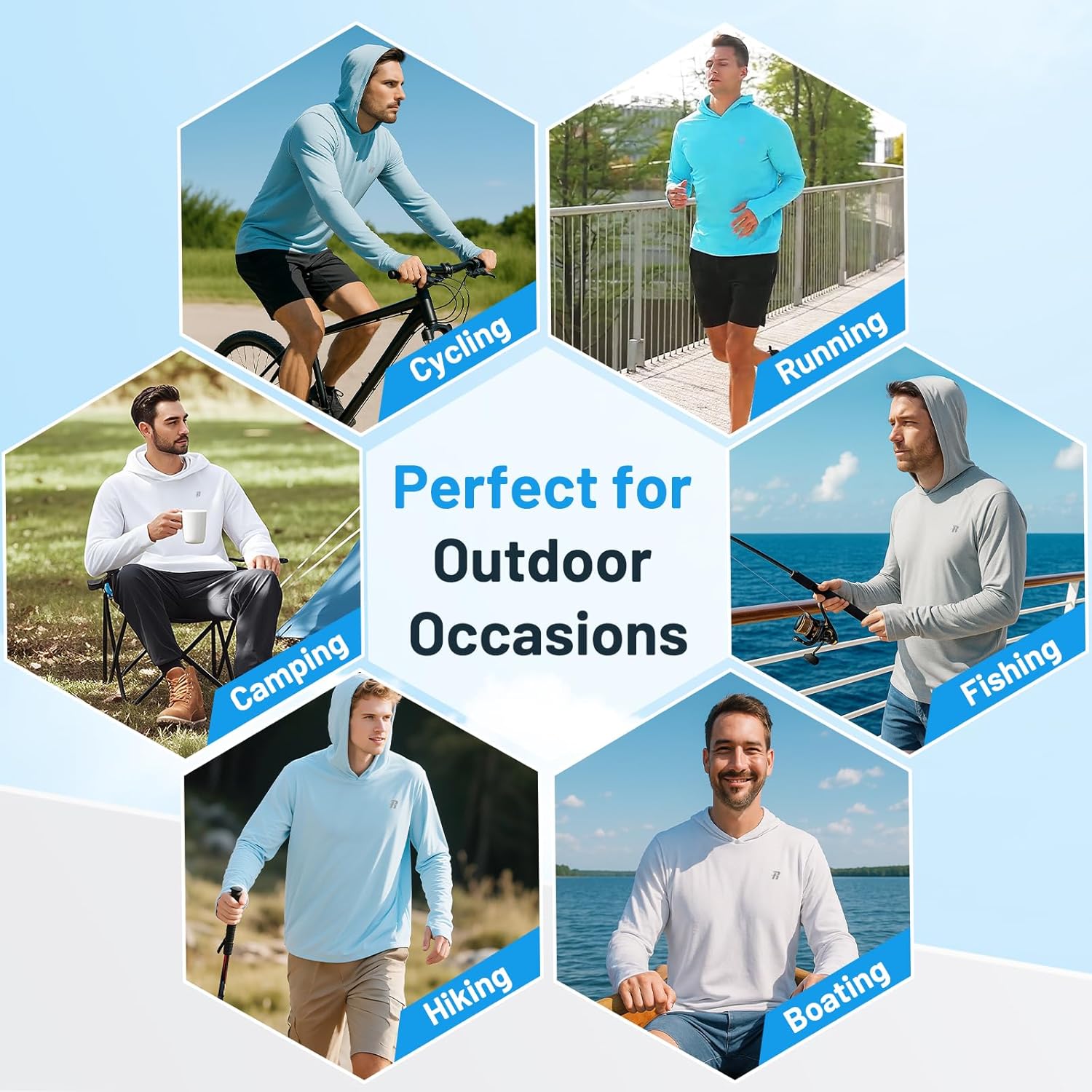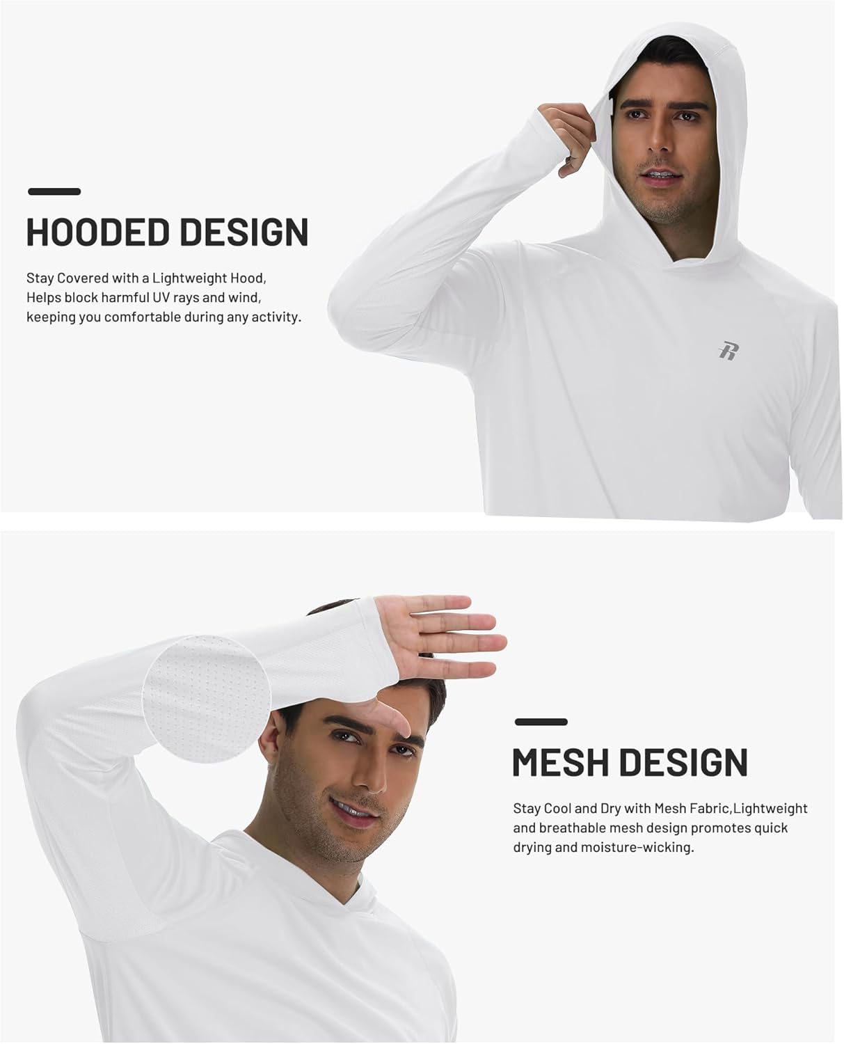 Runhit Mens Hooded Sun Shirts Uv Protection Long Sleeve
