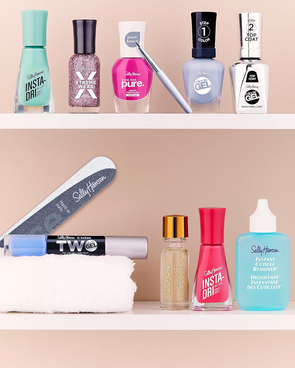 Sally Hansen Vitamin E Nail & Cuticle Oil, nourishes and moisturizes dry nails and cuticles. Our natural essential oil complex with Vitamin E, Apricot Kernel and Aloe conditions cuticles while increasing nail flexibility.