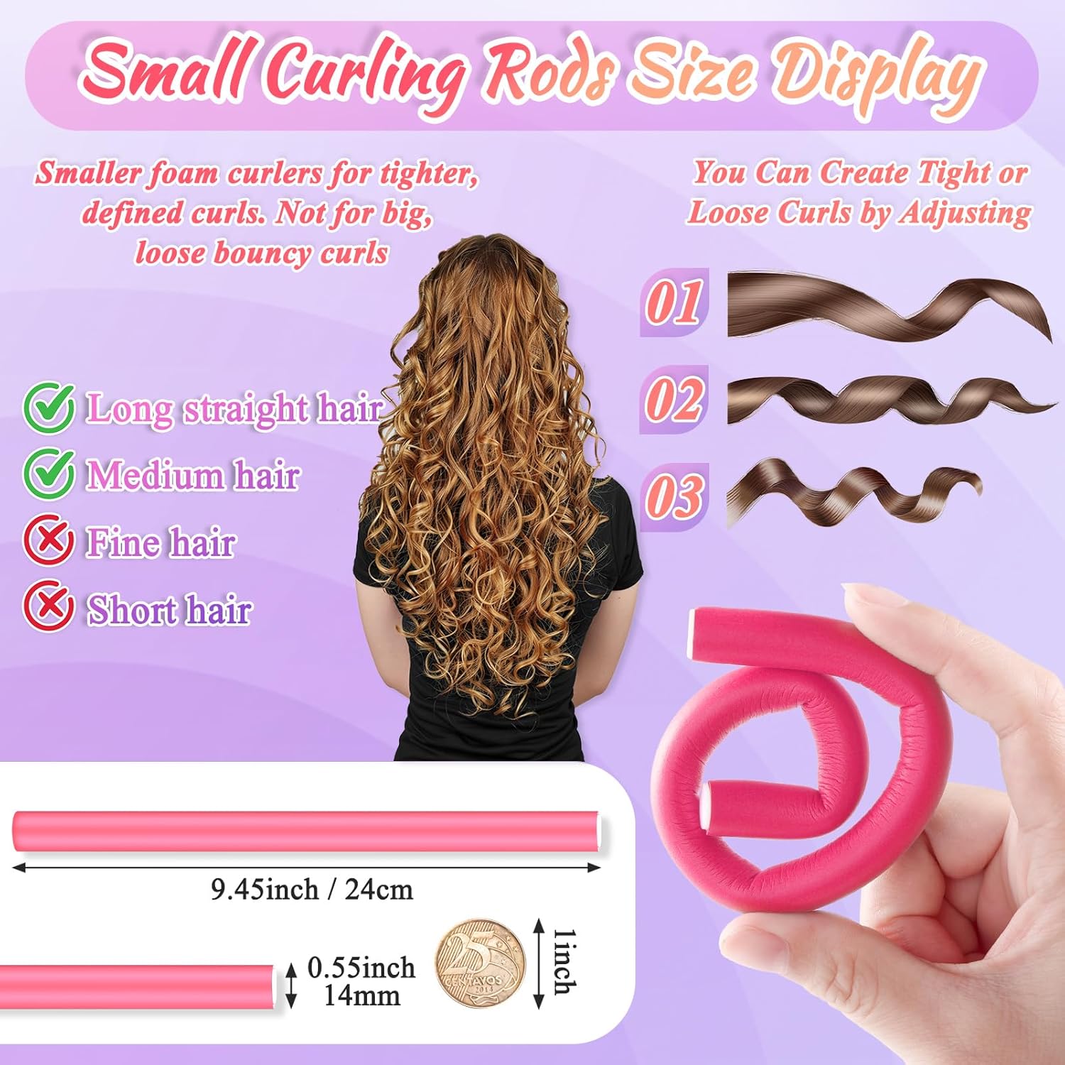 Standard Sizes: These twist foam curlers measure approx. 9.45 inch in length and diameters of 0.55inch/14mm, perfect sizes to create beauty curls and waves and styles for girls and women. It is also very convenient for women with long hair of sufficient length, and the proper diameter can shape the most natural curls