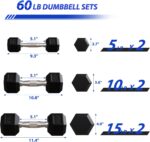 Signature Fitness Premium Rubber Encased Hex Dumbbell, 60-Pound Set Including A Pair of 5, 10 and 15 Pound