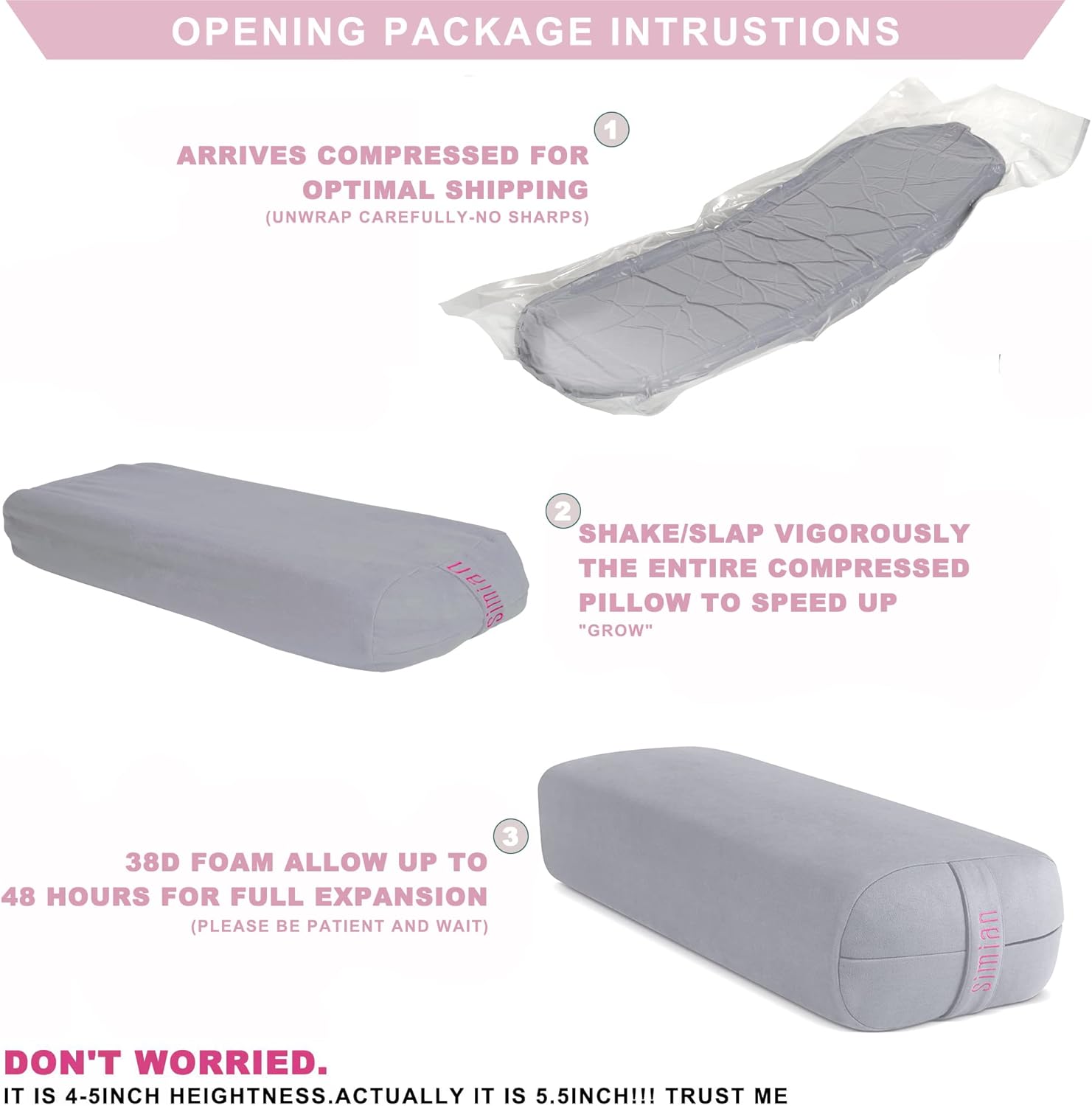 ▨VERSATILITY BOLSTER: SIMIAN Yoga bolster can be used as a knee support pillow for side sleep to help with alignment. It is could be a pregnancy arsenal after post-partum and gives you a extra support while reading or watching movie in bed. You deserve it.⚠️All bolsters are compressed during packaging. Please allow over 48 hours for bolster to decompress⚠️ (no longer than four days)PLEASE BE MORE PATIENT. Time will prove everything!!!