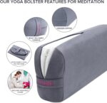 ▨A MUST FOR YOGIS: This rectangular bolster offers greater width and a flatter surface for supine postures. The long, flat surface supports the whole back and can also be used to raise the hips in sitting postures and for support in shoulder stand variations. With a sturdy, easy-carrying handle and embroidery logo detail, yoga bolster offers the greatest possible versatility, performance, and support for any practice, like yin yoga, Iyenga yoga,meditation, restorative yoga or simple stretching.