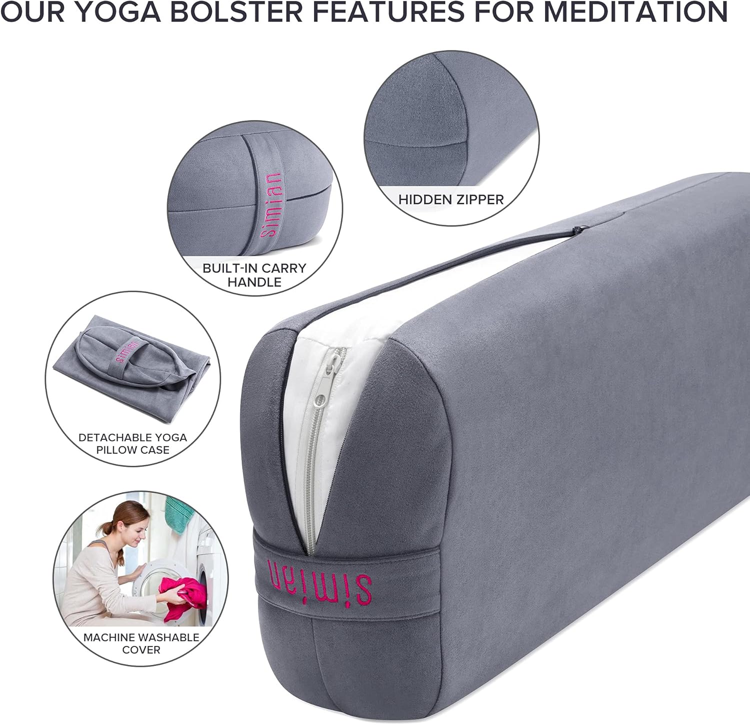 ▨OVERVIEW: With its space-saving & Ergonomic rectangular shape, SIMIAN rectangular yoga bolster features 35D PU fill to create a firm and excellent support cushion that provides superior support and cushioning. The yoga bolster pillow has a removable cover with hidden zipper construction and made from our plush, soft and absorbent suede mico-fiber fabric to keep you dry and comfortable.