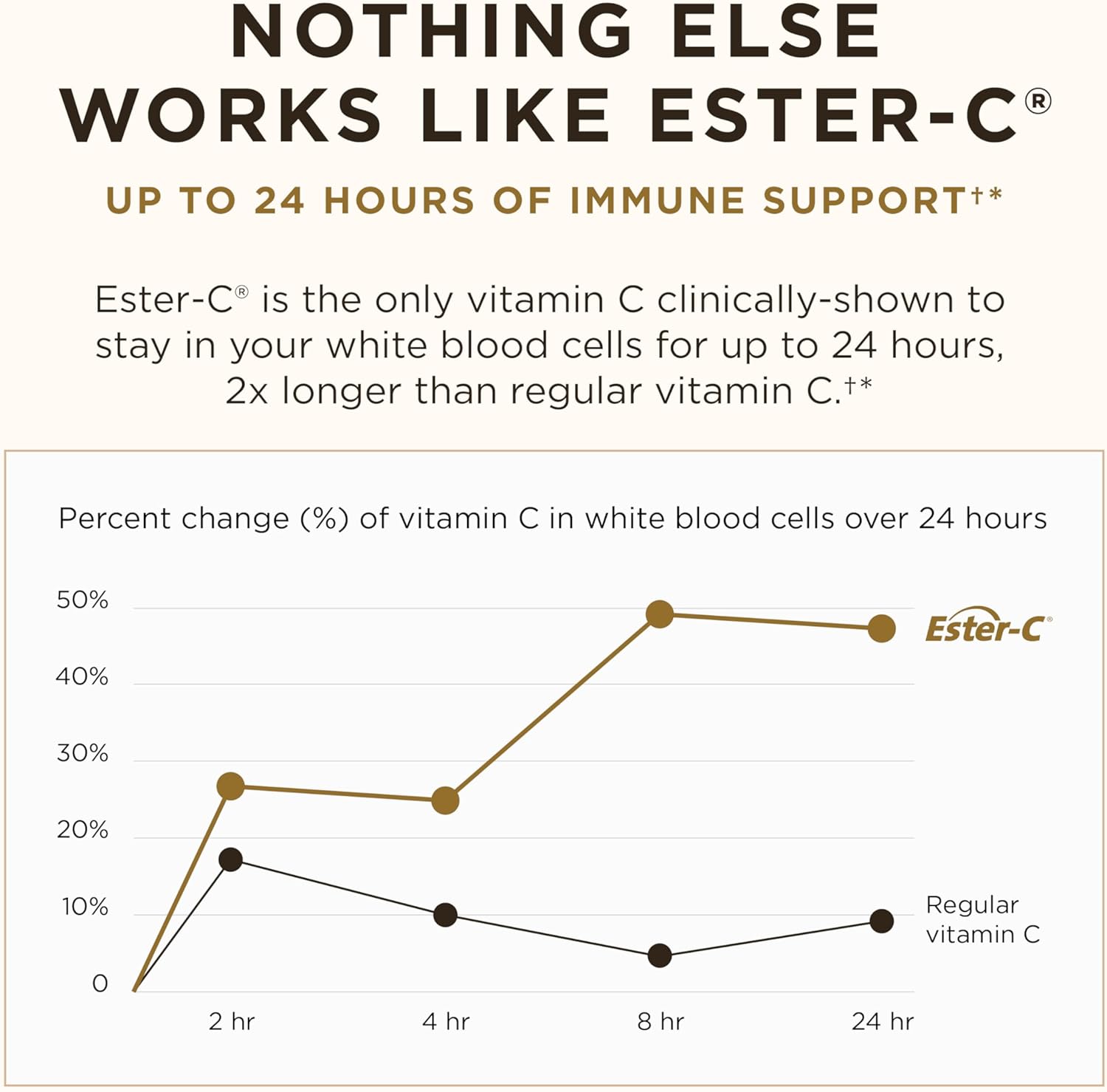 Well-Retained; The Vitamin C metabolites in Ester-C positively impact retention of Vitamin C in cells; This complex yields beneficial antioxidant and immune system support; Includes natural bioflavonoids, acerola berry, and rose hips fruit powder