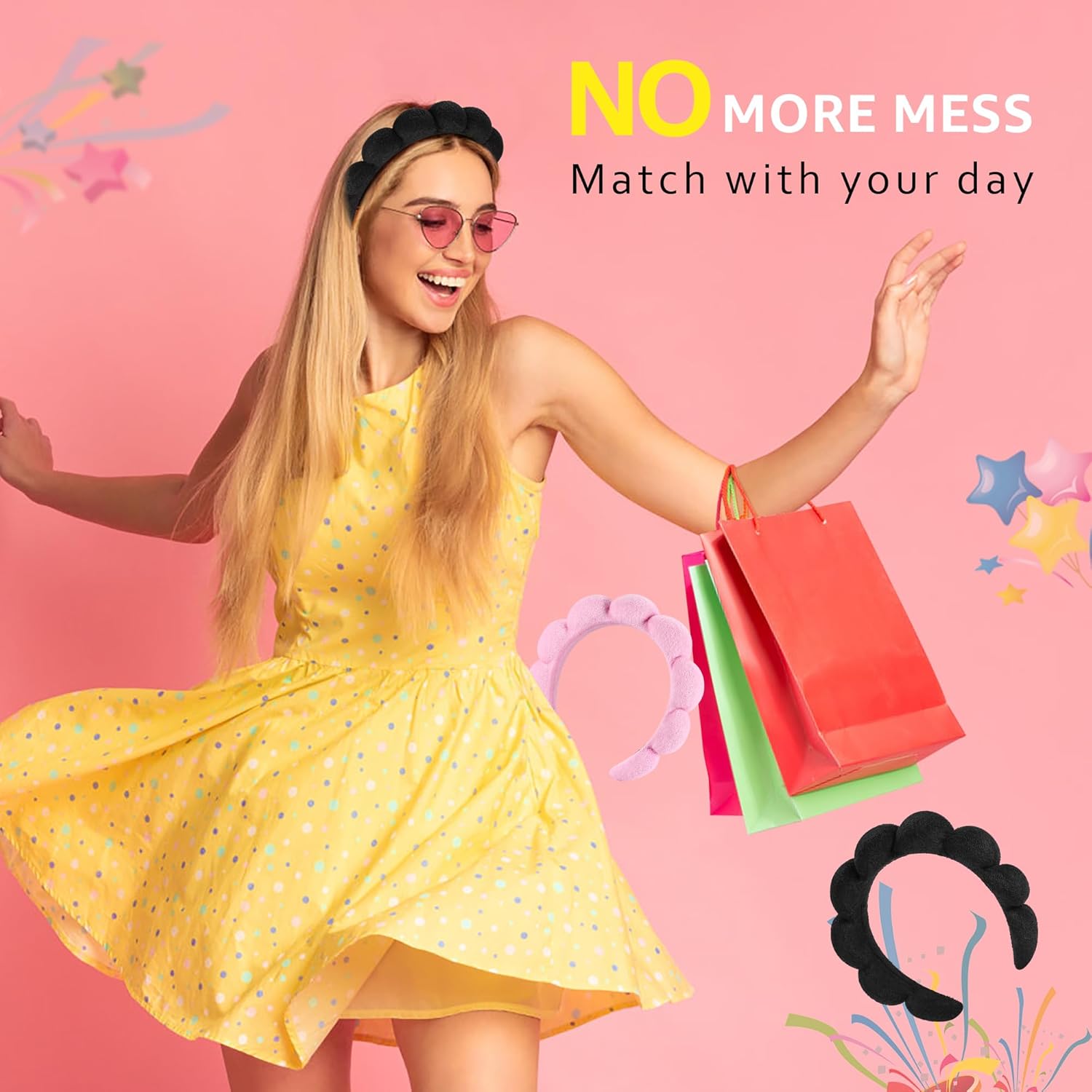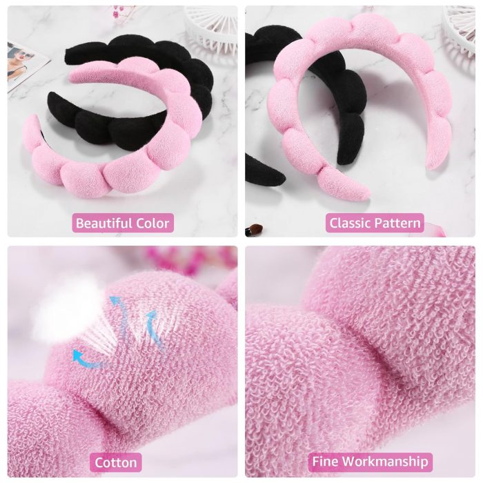 1 PINK & 1 BLACK COMBO PACK: 2pc spa headband pack includes a black headband & pink headband in the same bubble scallop crown design. Each 13” towel headband is reusable. Perfect for spa days with your BFF