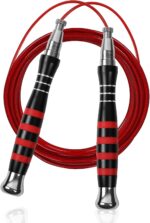 Durable and Adjustable Cables: The speed rope comes with two adjustable Diameter 4mm length 9.8-foot polymer-coated cables, crafted for durability and performance. These durable cables prevent tangling and are perfect for all fitness levels, ensuring a long-lasting product that adapts to your specific needs.