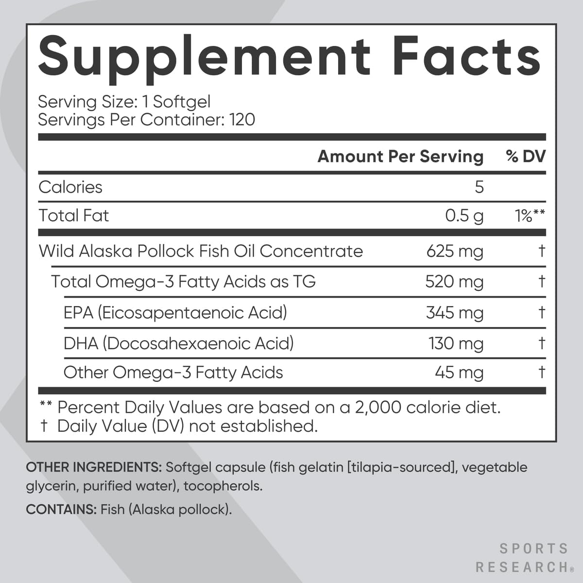 Wild Alaska Pollock Fish Oil Concentrate, Wild Alaska Pollock Fish Oil Concentrate: Total Omega-3 Fatty Acids as TG (EPA [Eicosapentaenoic Acid], DHA [Docosahexaenoic Acid], Other Omega-3 Fatty Acids), OTHER INGREDIENTS: Softgel capsule (fish gelatin [tilapia-sourced], vegetable glycerin, purified water), tocopherols., CONTAINS: Fish (Alaska pollock).
