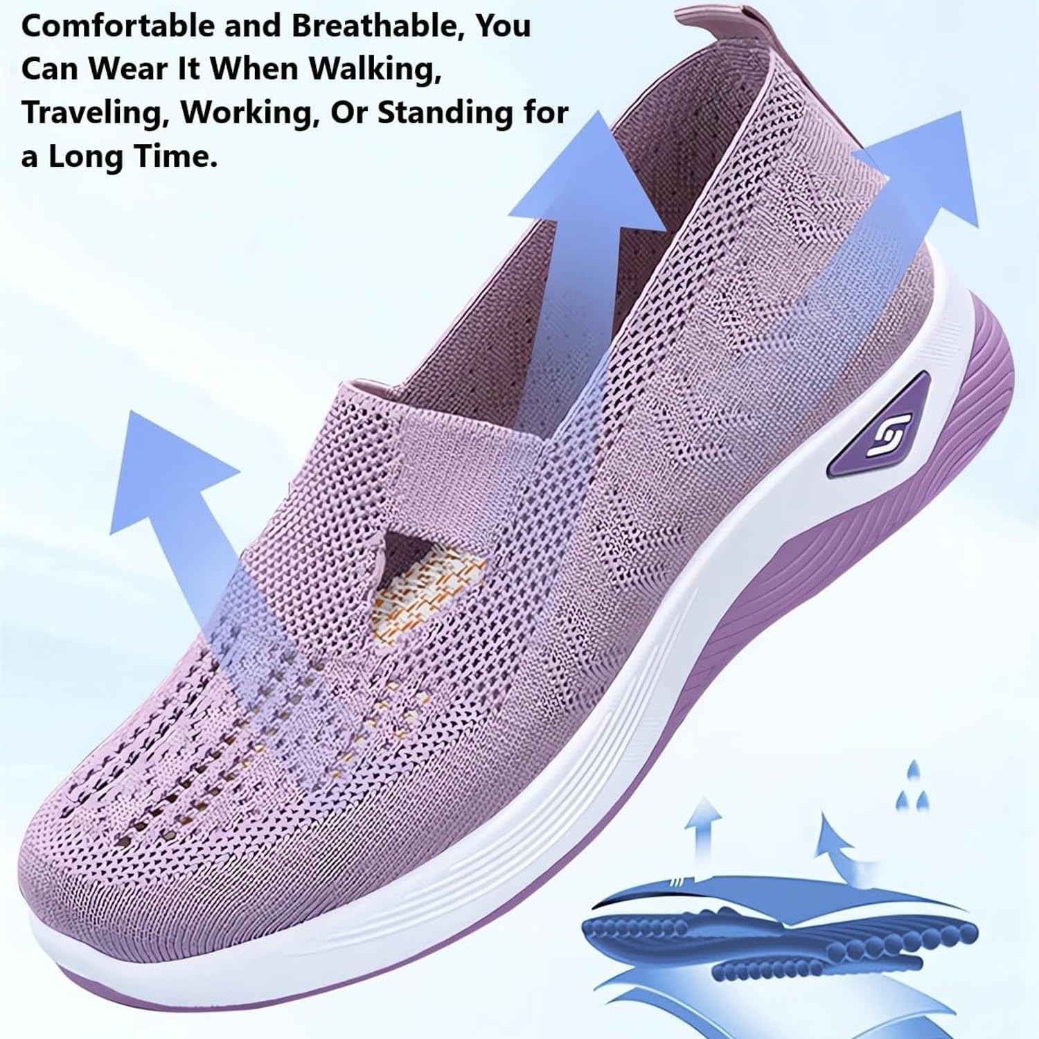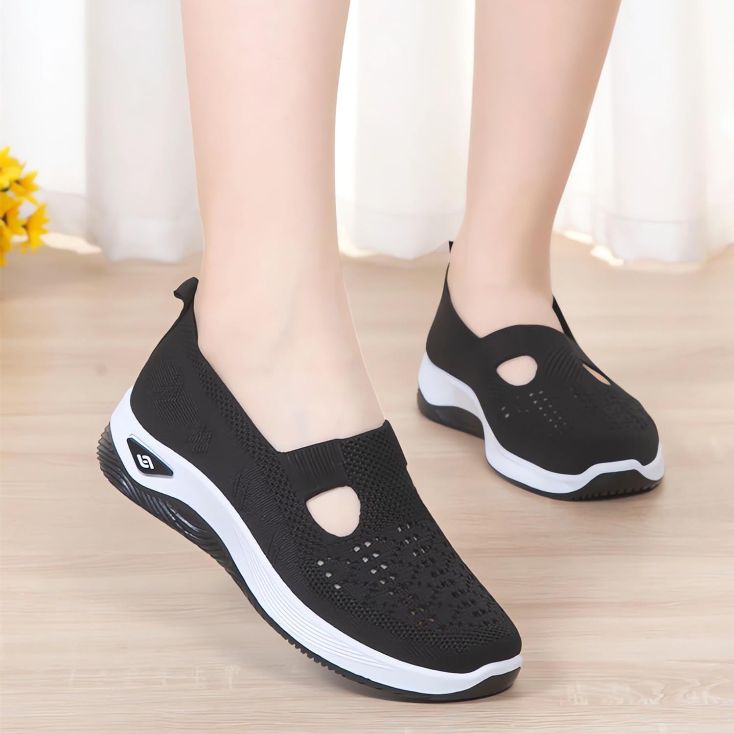 Women’s Comfortable Breathable Knitted Sneakers Orthopedic Walking Arch Support Soft Cut-Out Shoes