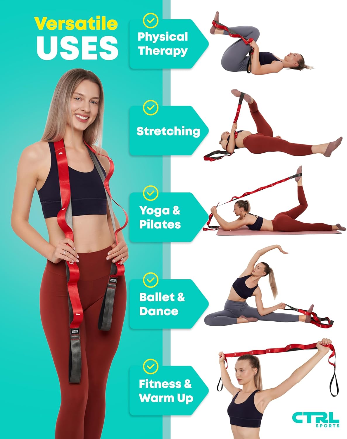 Improve Your Health – Increase your flexibility and stretch yourself easier and safer. The stretch strap with loops and with ultra comfort neoprene handles takes care of your hands and feet, allows you to improve your stretching or yoga skills and makes you feel and look younger
