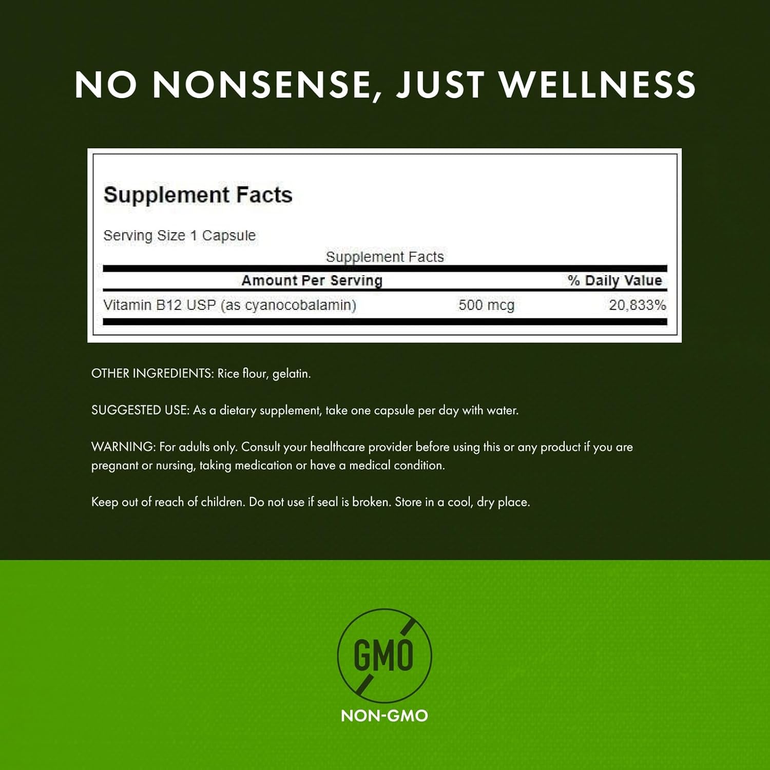 Premium Vitamin B12: Swanson B12 Cyanocobalamin is an essential vitamin for overall health and well-being; our vitamin B12 supplement delivers a potent 500 mcg per serving