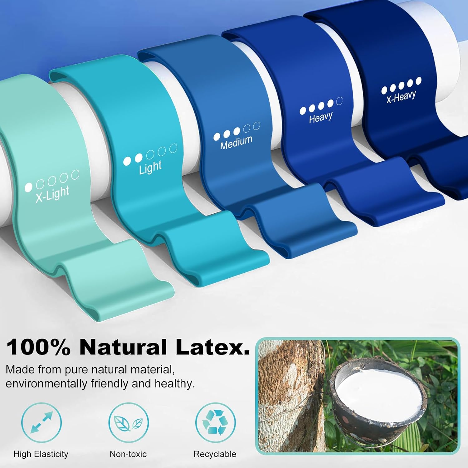 Durability: The resistance band is made from Natural Latex Material. It can withstand repeated stretching and resistance without losing its elasticity or effectiveness.