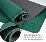 High grade tree rubber and PU; Non slip yoga mat rubber bottom gives you cushioning and a non slip workout mat. PU Leather top layer absorbs moisture & gives you a secure grip.