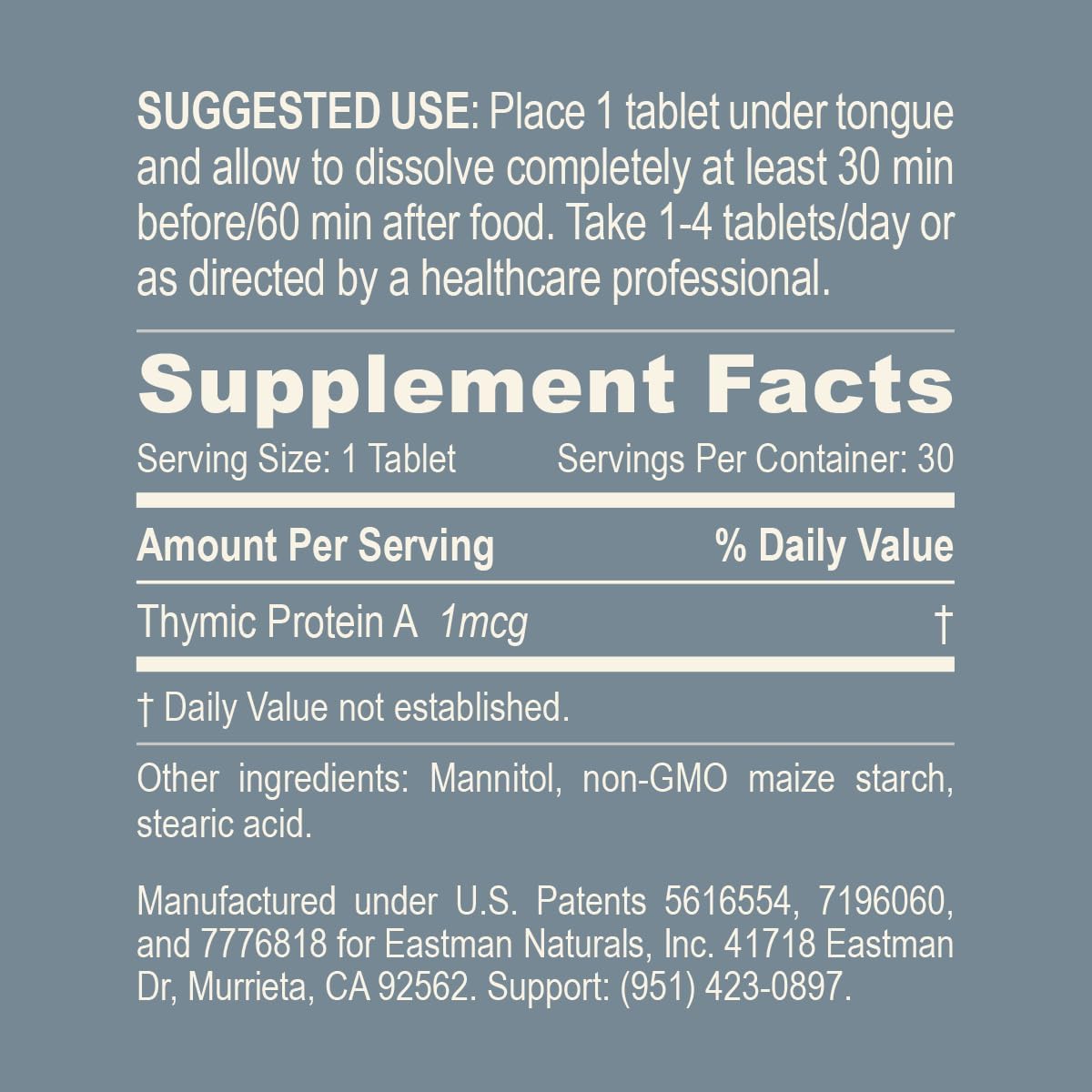 [TABLET FORM] – The world’s only complete, fully-intact thymic protein—Thymic Protein A (TPA)—in a convenient, fast-dissolving tablet. Newly reformulated to allow for even faster sublingual dissolve time.