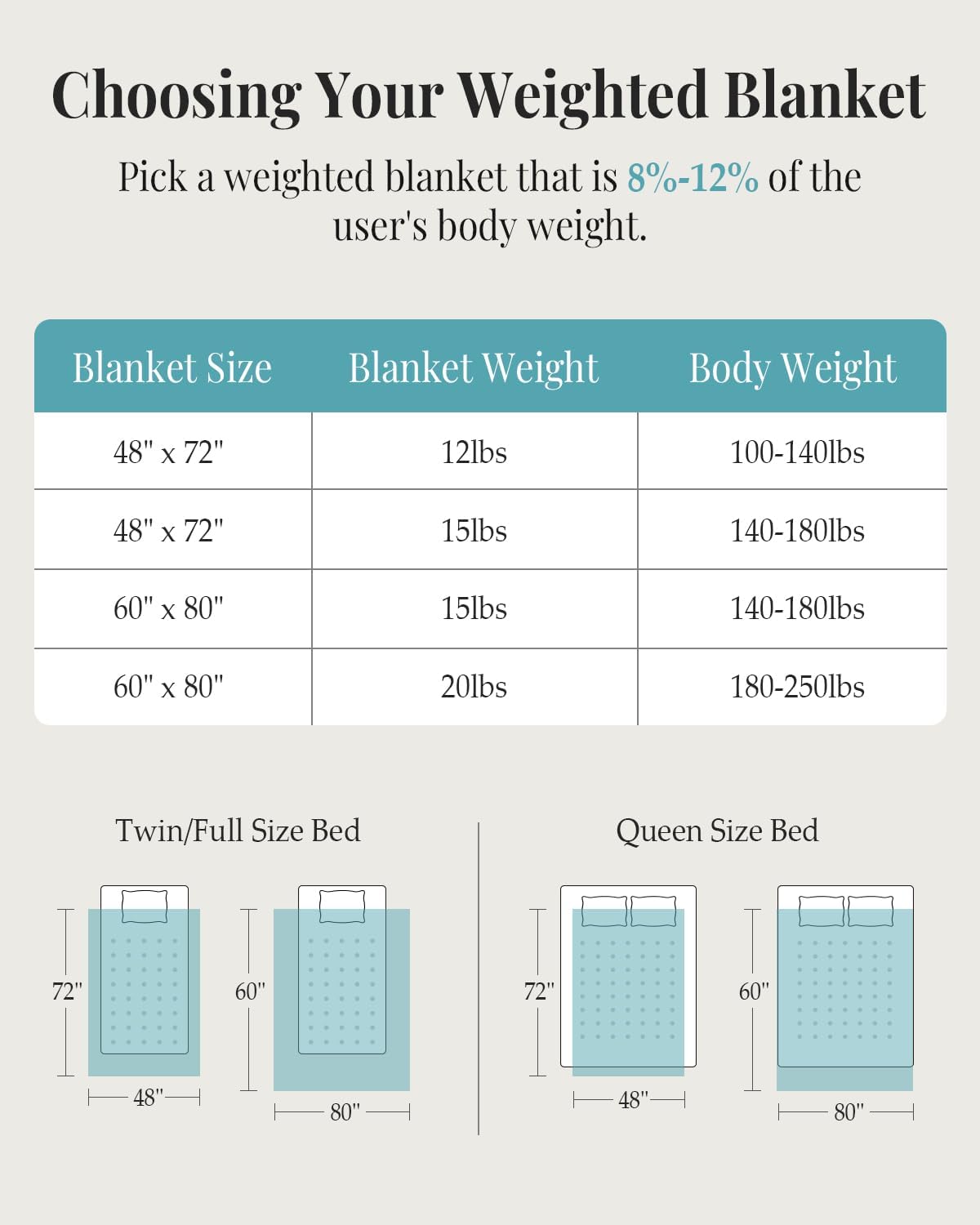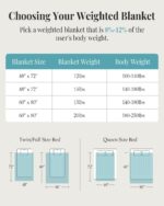 Choosing the Right Weight: It is recommended to select a weighted blanket that is approximately 10% of the user’s body weight for optimal results. For first-time users, choosing a slightly lighter blanket is advisable, and it typically takes 7 to 12 days to gradually adjust and enjoy its benefits.