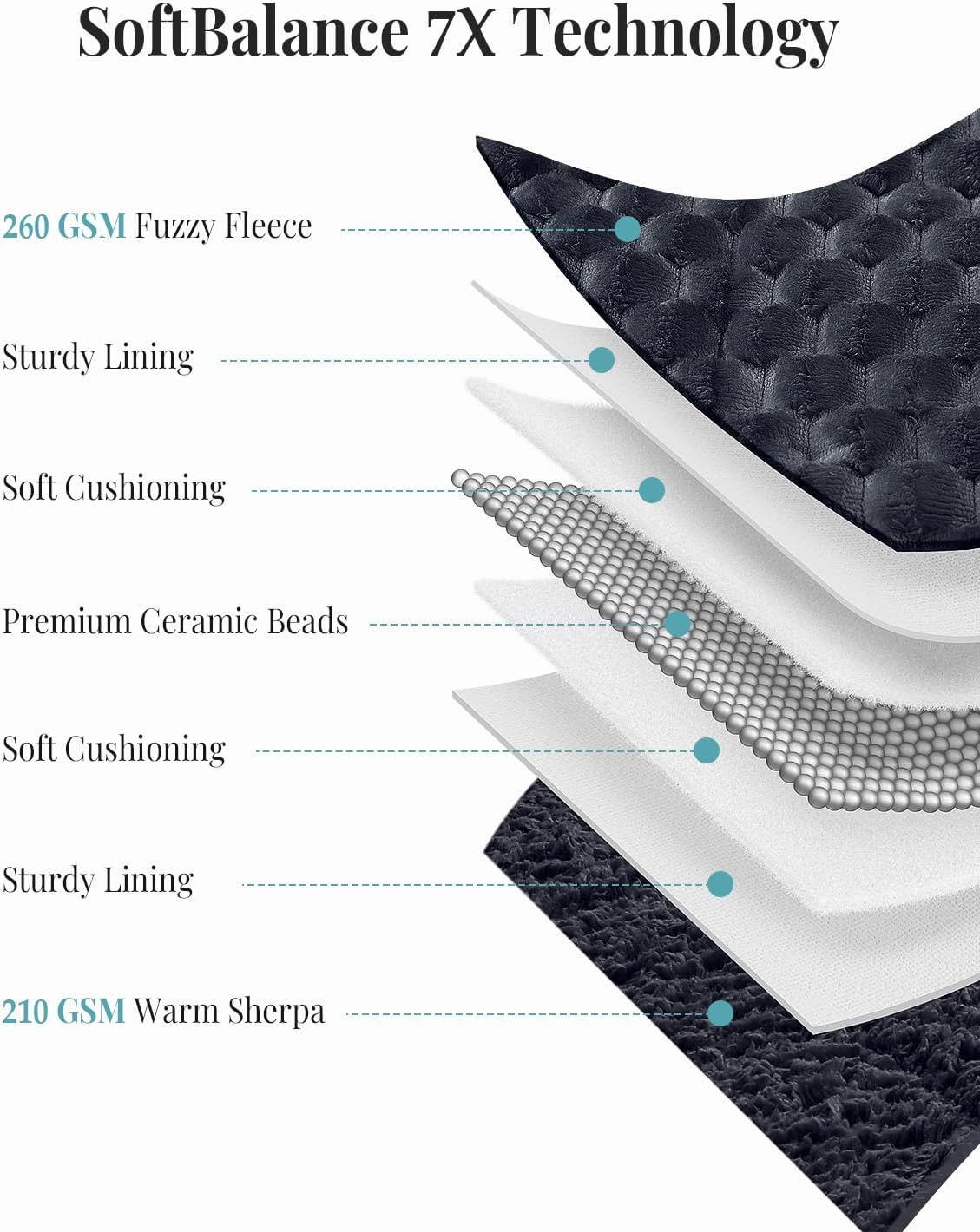 SoftBalance7X Technology: Crafted with a meticulous 7-layer construction, our weighted blanket ensures the internal ceramic beads stay securely in place. This design prevents leaks and evenly distributes the weight across the blanket, providing ultimate comfort and tranquility.