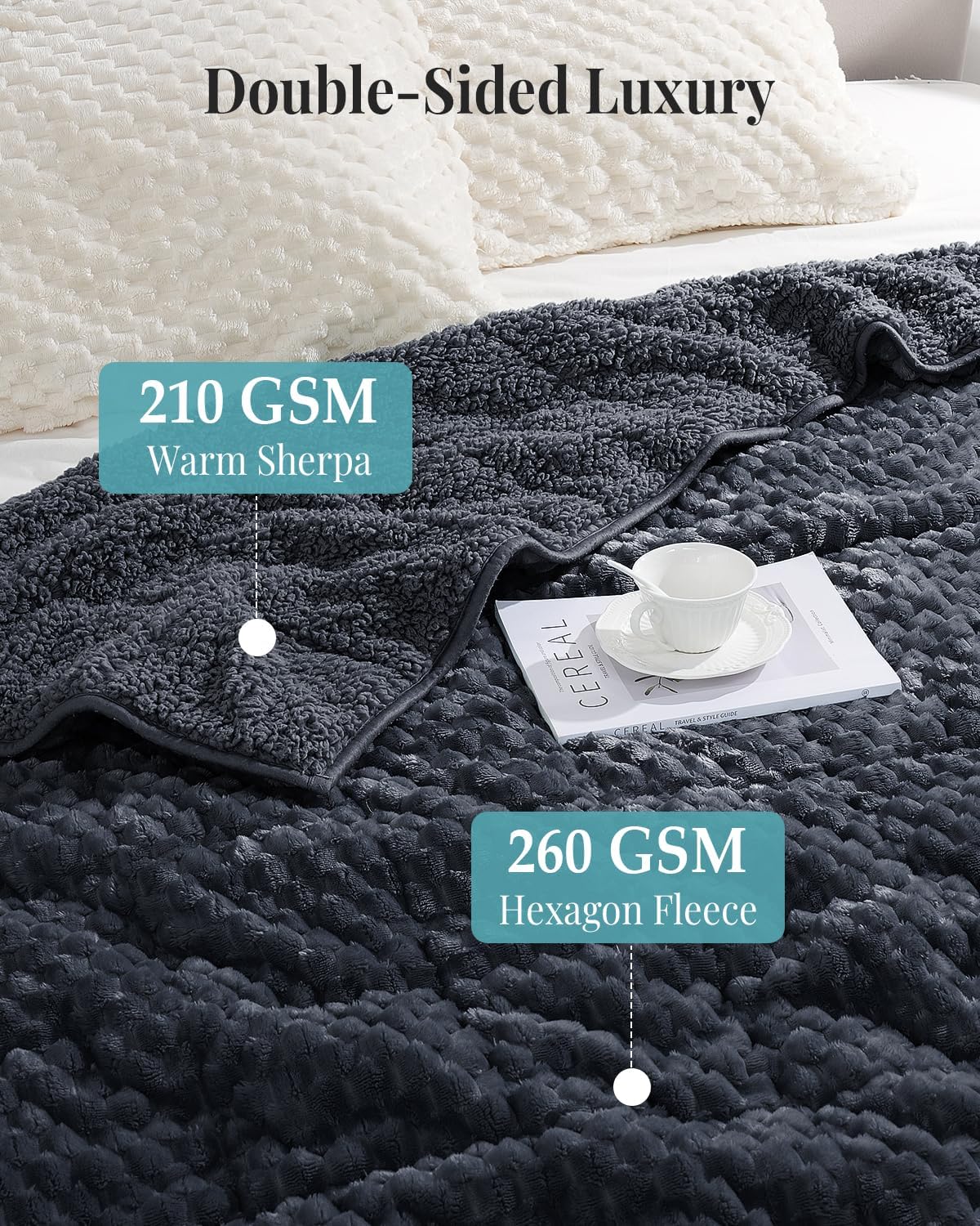 Double-Sided Softness: This adult weighted blanket features a reversible design with one side made of 260 GSM puffy hexagon fleece and the other side of 210 GSM cozy Sherpa. This plush weighted blanket offers unparalleled softness and comfort, providing a luxurious feel.