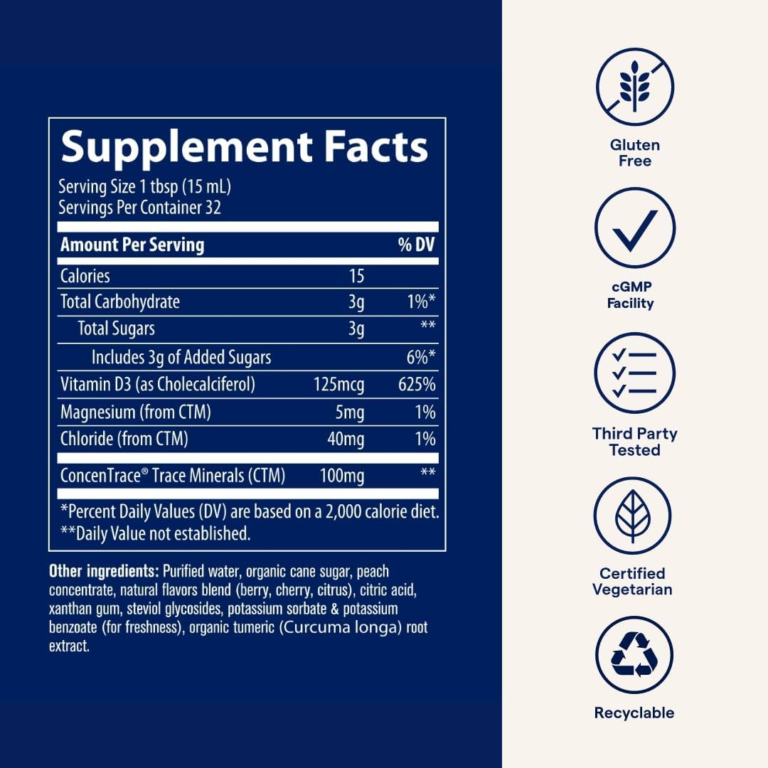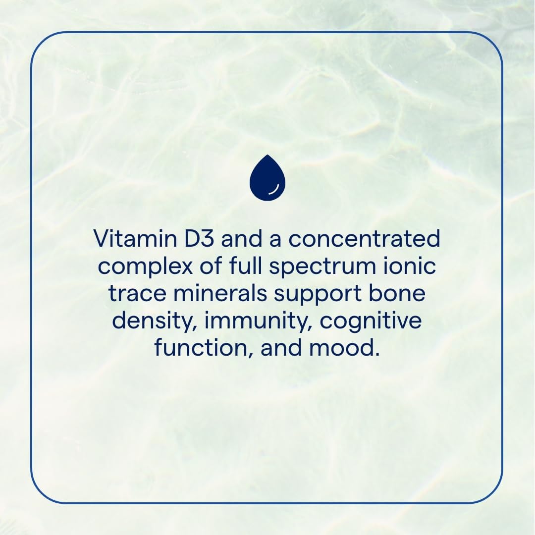 5,000 IU VITAMIN D3 – Liquid Vitamin D3 offers 125 mcg D3 in a rich, natural, and potent liquid supplement that provides the same amount of daily Vitamin D as 50 glasses of milk! It also includes a full spectrum of ionic trace minerals