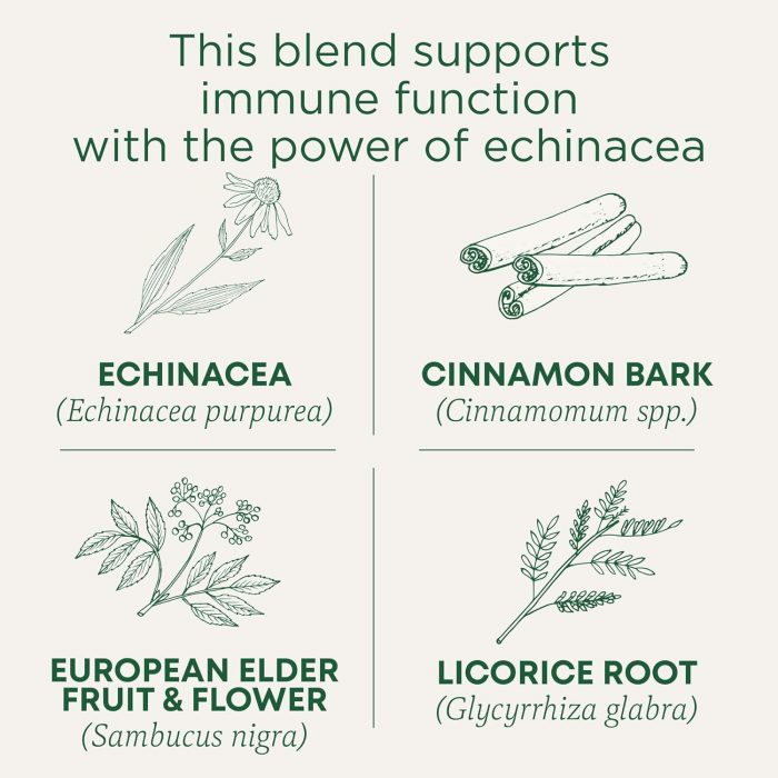 Plant Story: Indigenous to North America, Echinacea is one of the most well-studied plants in herbalism. Combined with licorice root and the celebrated elderflower and elderberry, this tea will give your immune system a boost when you need it most.*
