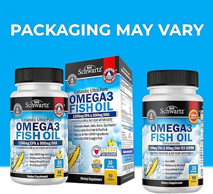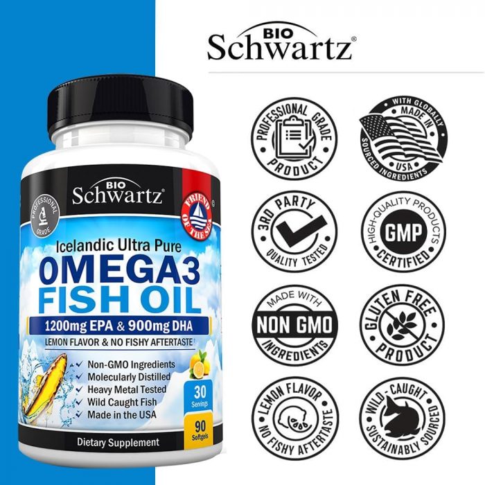 The BioSchwartz difference: Our Omega 3 Fish oil softgels are pescaterian-friendly, non-GMO, gluten free, manufactured in the USA in a cGMP-compliant facility, and third-party tested for purity, ensuring the highest levels of quality (Packaging may vary)