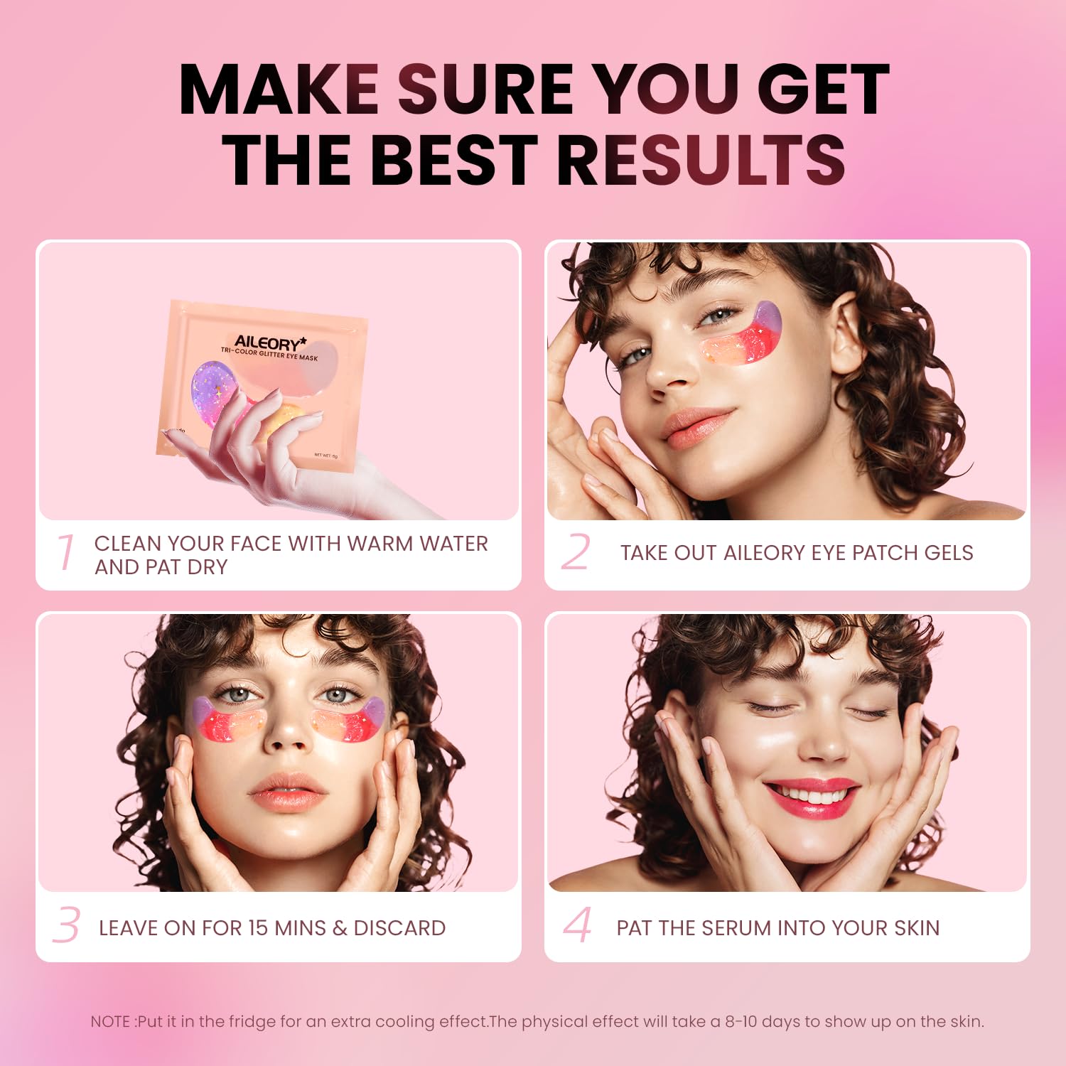 REVITALIZE YOUR UNDER EYES WITH TRI-COLOR GEL PATCHES: Treat your delicate under-eye skin to the luxury of our unique tri-color eye masks. Enriched with nourishing ingredients, these masks deeply hydrate, moisturize, and provide essential nutrients to rejuvenate your under-eye area, all without any adverse effects.