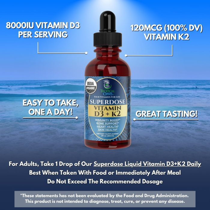 Tons of Benefits in Every Drop: Support Your Bones and Promote Heart Health with Our Organic Vitamin D3 + K2 Drops. Help promote calcium absorption and support vitamin levels with this easy-to-take dropper.
