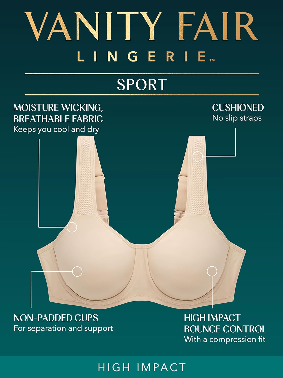 The High Impact Underwire Sport bra is our most supportive style for your most intense workouts. Non-padded cups provide separation and support while moisture wicking and breathable fabrics keep you cool and dry. Straps convert to criss-cross for maximum wardrobe versatility.
