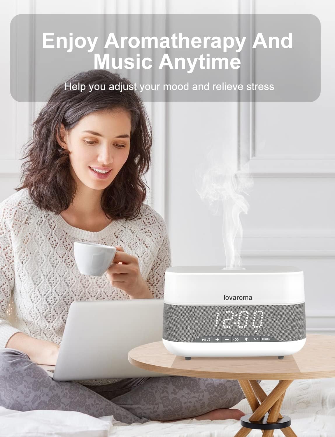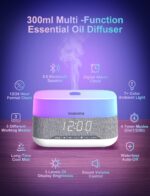 [Multi-Functional Aroma Diffuser] Redefining Aromatherapy Experience. The innovative and stylish Multi-Functional Aroma Diffuser is designed to enhance your aromatherapy journey. It combines essential oil diffusion, a Bluetooth speaker, a digital clock, and an alarm clock all in one, creating the perfect atmosphere in your home.