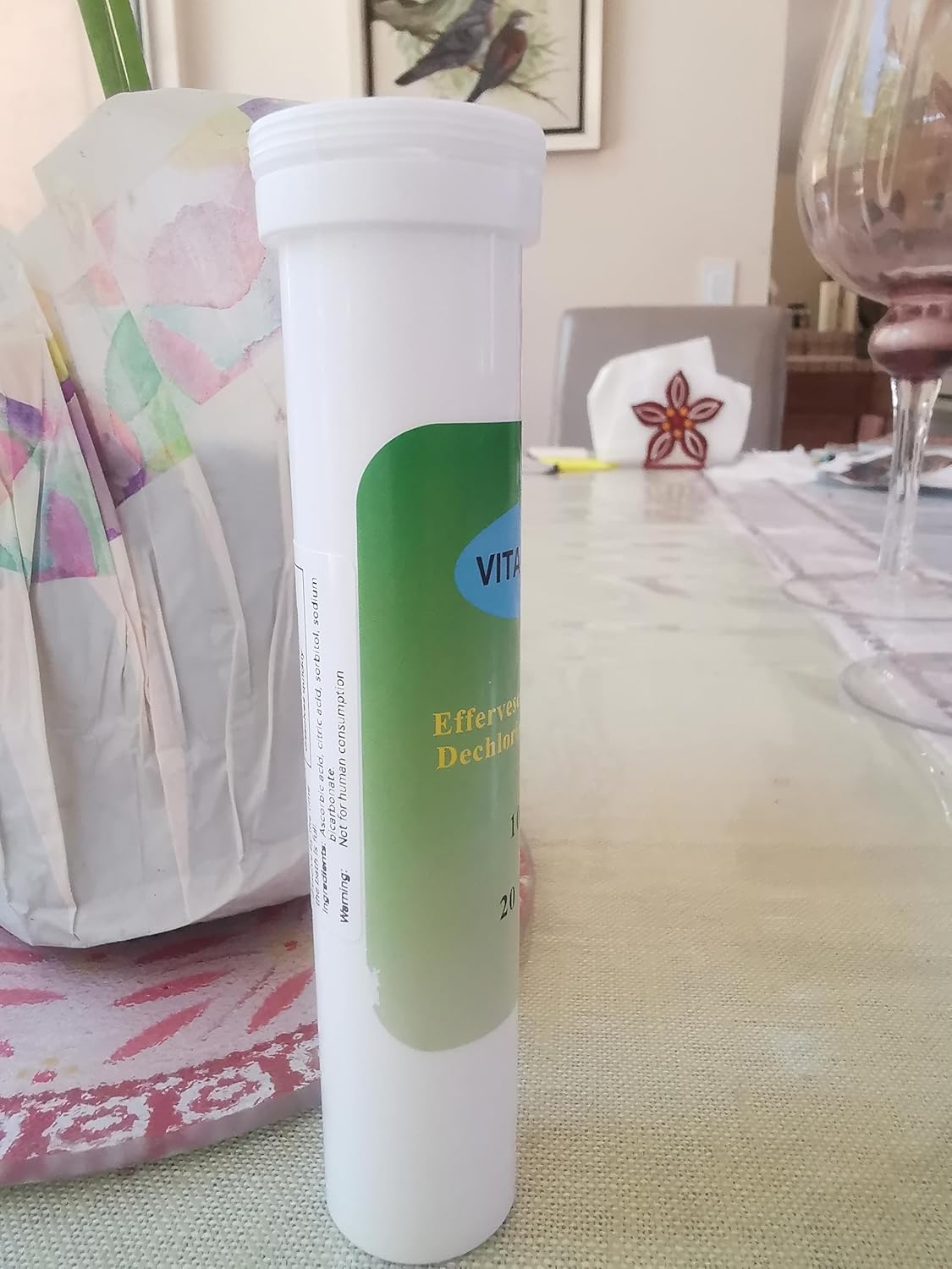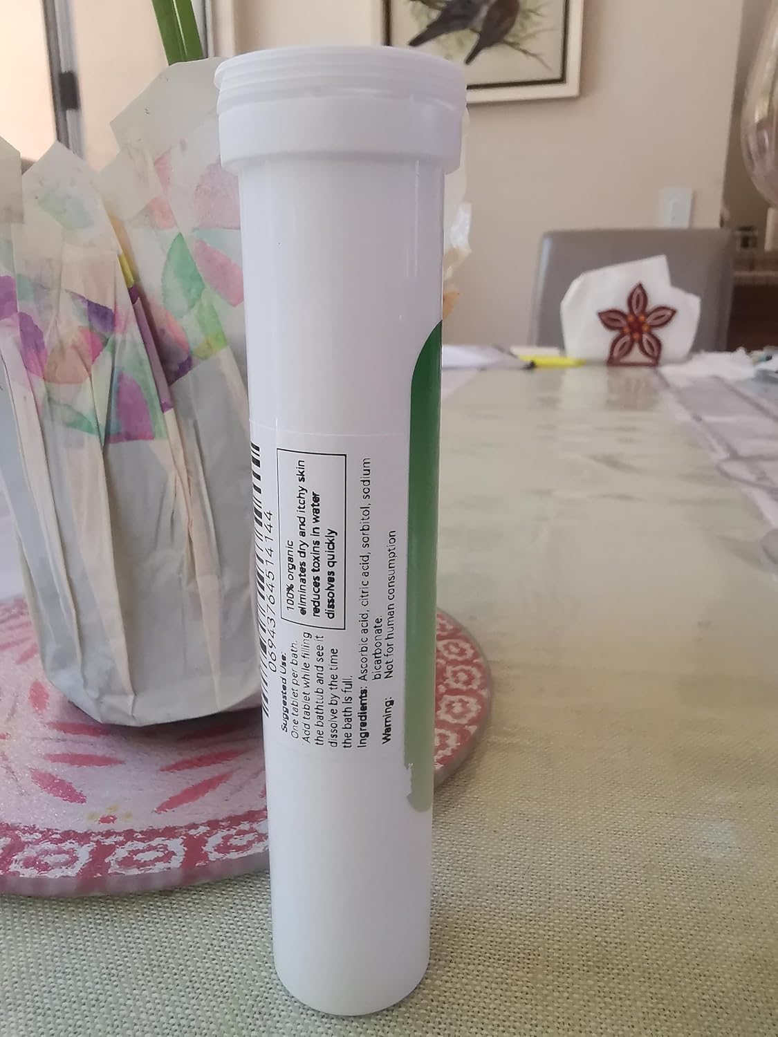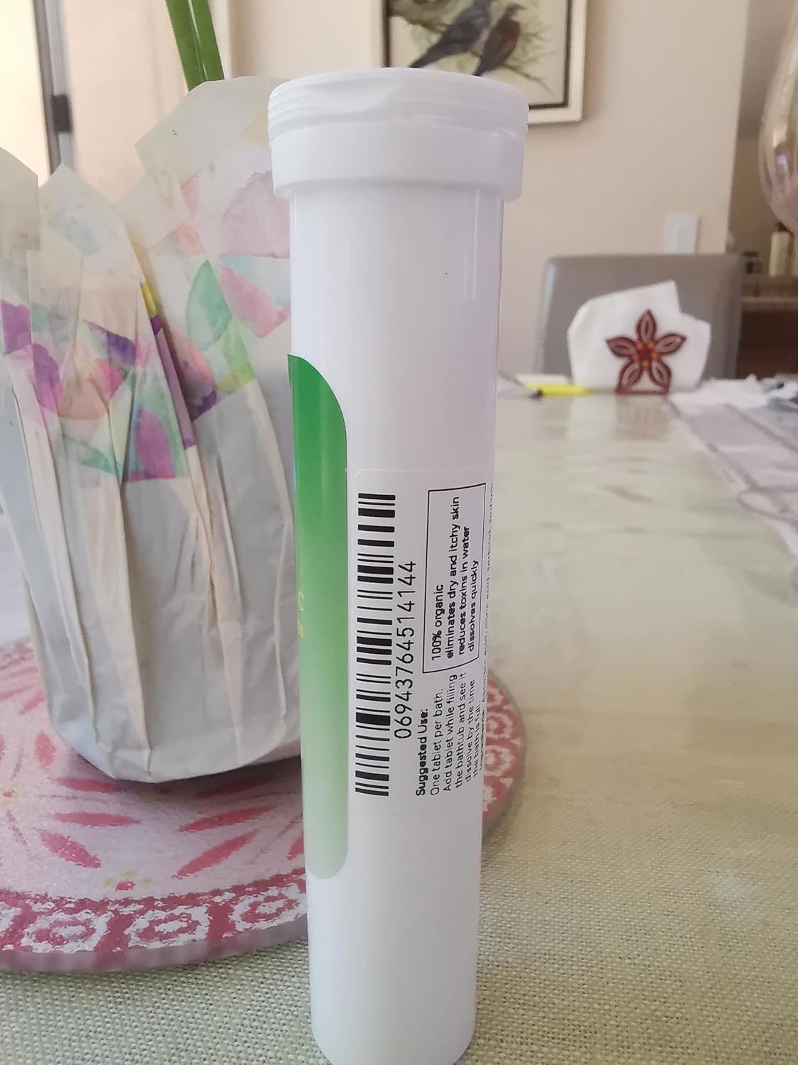Are you worried that you have used many products to treat your skin problems, but they still have doesn’t work? Have you ever thought that maybe it’s the tap water we use that’s the problem? Today, let us with you to cut off those like the itchy skin, sensitive skin, dryness, and hair loss from this very common problems in our daily life. Let’s experience change starting with a completely clean and fresh bath… DESCRIPTION: Quantity–Each one tube have 20 tablets Ingredients–Ascorbic acid, VC, citric acid, sorbitol, sodium bicarbonate. Fragrance-none Age group-all As Vitabath dissolves, the vitamin C will become effervescent and begin to fizz. One Vitabath effervescent tablet is able to neutralize 1 ppm chlorine and chloramines in 100 gallons of water and completely eliminate the dry itchy skin caused by chlorine in your hot tub or spas. Great for a Luxury Bath! Features : De-chlorinating agent is 100% pharmaceutical grade Vitamin C. Totally neutralizes chlorine and chloramines from your hot tub and spas. Improves condition of skin and texture of hair. Relief from dry, itchy skin. Meets the de-chlorinating requirements of the US EPAS Clean Water Act. Environmentally safe. Contains a nutrient which is essential for better health. Also for Patio, Lawn & Garden and swimming Pool chlorine 100% organic. US patent Suggested Use: One tablet fully neutralizes 1 ppm chlorine and chloramines in 100 gallons of water. Preferably one tablet per bath. use in hot tub or spas. Warn: Not for human consumption