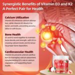 Strengthen Your Bones with Every Filled Gummy! : Our vitamin D3 K2 gummies feature a unique liquid-filled design ensures that each gummy offers ultra-high absorption rates, making it more effective at delivering essential nutrients to your body. Infused with 125 mcg of Vitamin D3 (from Cholecalciferol) and 100 mcg of Vitamin K2 (from MK-7), supporting bone and cardiovascular health. D3 boosts calcium absorption, while K2 directs calcium to your bones, minimizing arterial calcification