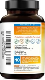 Best Combination of Vitamin D3 + K2: Did you know D3 and K2 work better together? Vitamin D3 helps your body absorb calcium, while vitamin K2 directs calcium to your bones instead of joints and arteries.* Our 2-in-1 support formula provides greater bone, teeth, muscle, heart and immune function support.*