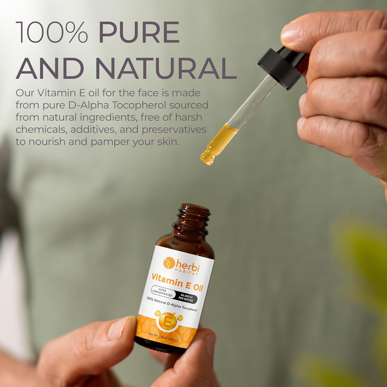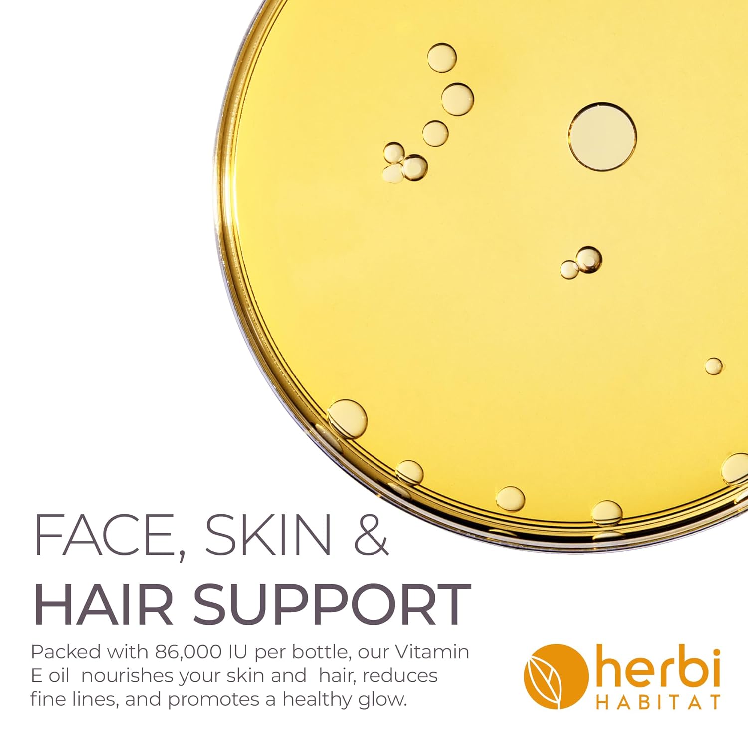 At Herbi Habitat, we wanted to bring you a hair and skin care oil that was gentle yet packed with nutrients and antioxidants – so we did. Made from non-GMO ingredients with 86,000 IU per bottle, this pure Vitamin E oil offers more than just skin support. It helps promote stronger nails, longer and thicker hair, and a naturally radiant complexion. Easy to incorporate into your daily routine, Herbi Habitat pure Vitamin E oil is a versatile addition to any skincare ritual to nourish the body, face, and hair daily.