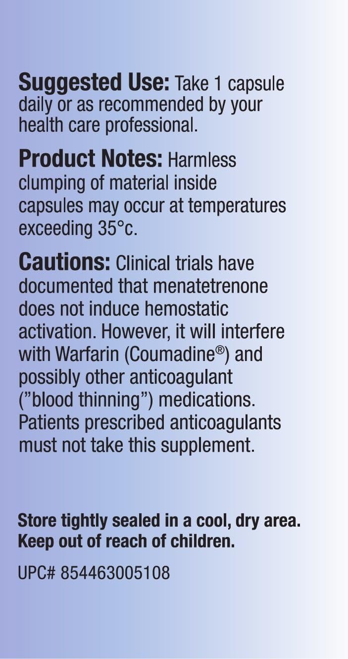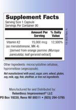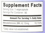 15,000 mcg (15mg) per capsule Vitamin K2 Mk4
