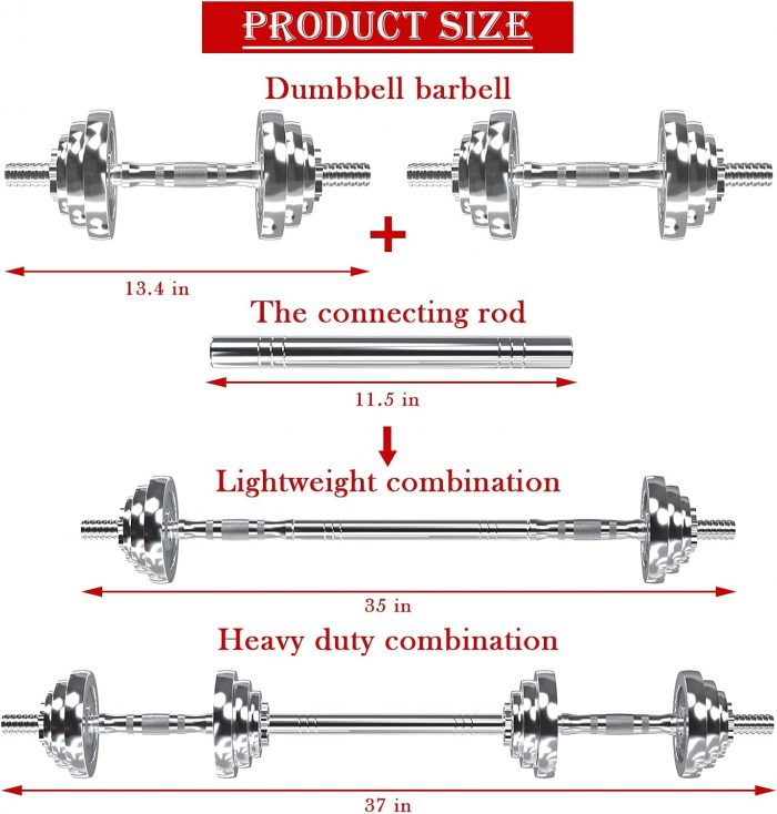 【More Stable】- This dumbbell is made of solid pure iron, and the surface adopts a 7-layer electroplating process, don’t worry about rusting. The connector handle is knurled for better grip and increased safety during exercises. Compatible with 1-inch spin-lock dumbbells.