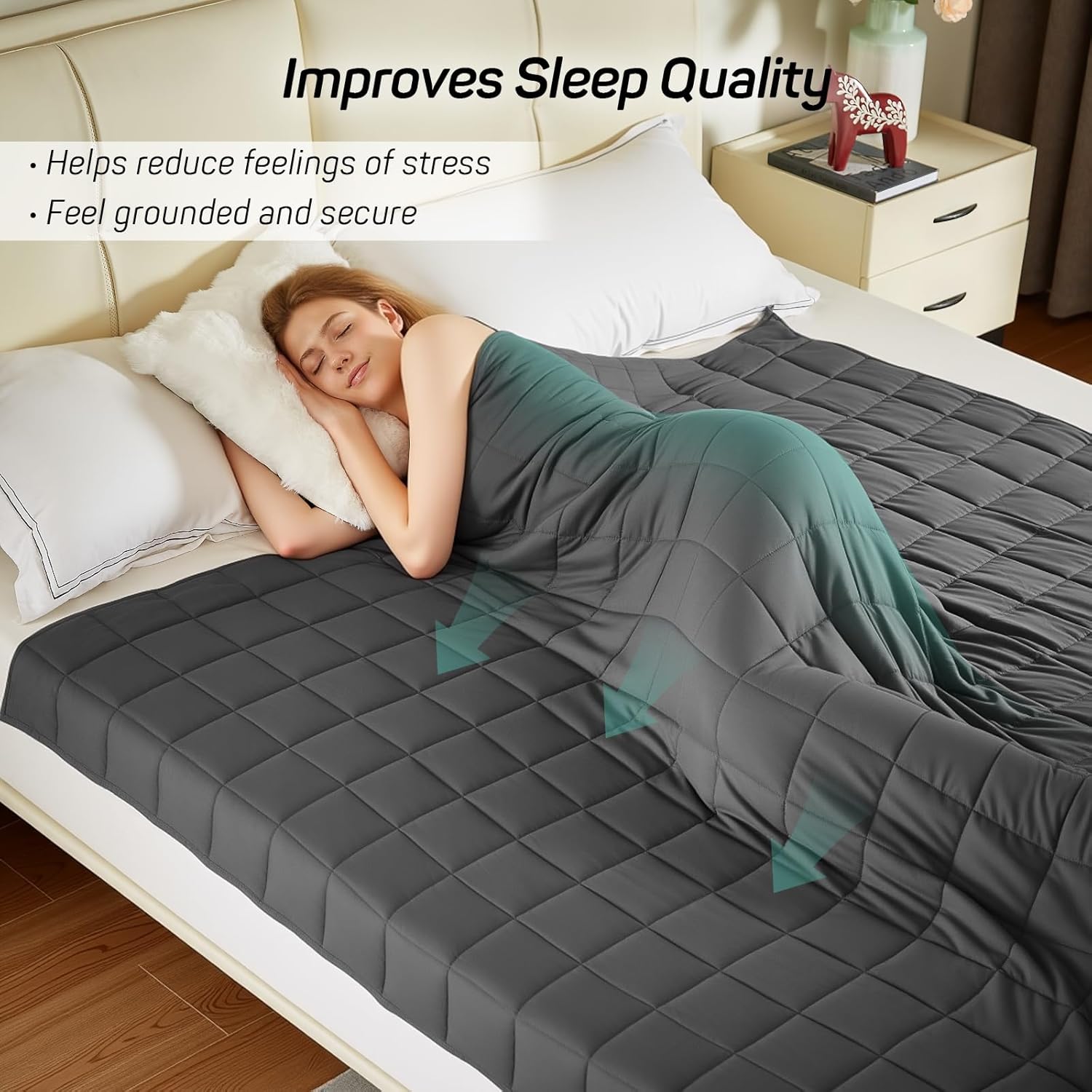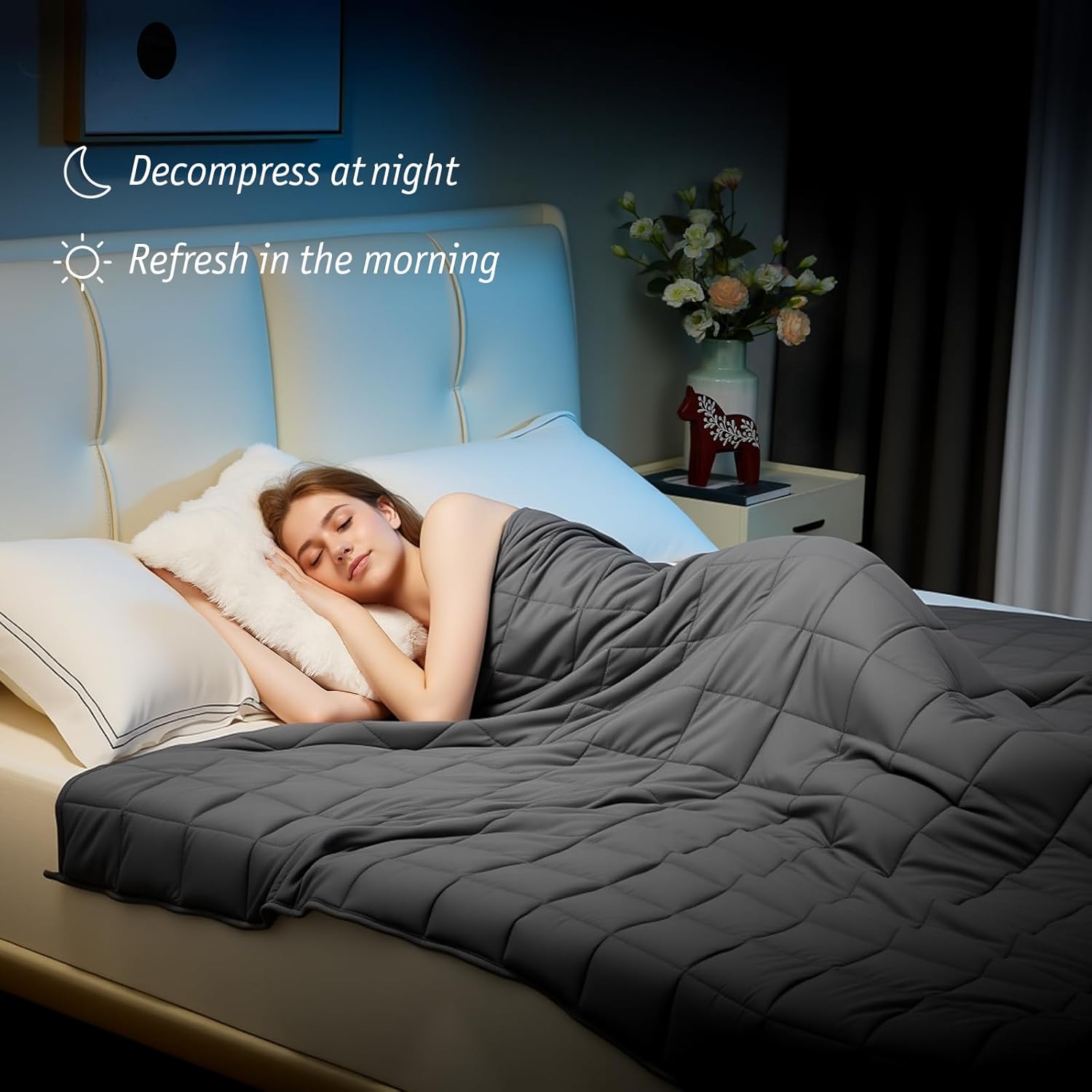 Experience Deep Calm & Quality Sleep: Our weighted blanket utilizes advanced pressure distribution technology to mimic a comforting embrace. This full-body hug sensation helps soothe the nervous system and release daily tension. By providing a profound sense of security, it creates the ideal conditions for falling asleep faster and achieving deeper, more restorative sleep cycles.