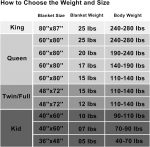 Recommended Weight Size: Please choose 7%-12% of your body weight which would help you sleep better. We recommend 48”x72” for twin bed, 60”x80” for queen bed. This weighted throw blanket can be used while sleeping, reading, relaxing, or meditating