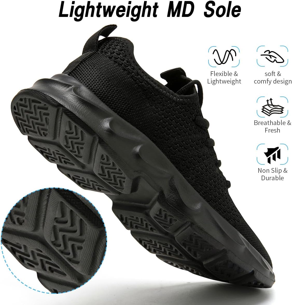 The breathable and durable breathable mesh upper covers multiple pores, providing excellent breathability and quick drying, keeping your feet fresh when wearing shoes all day long.