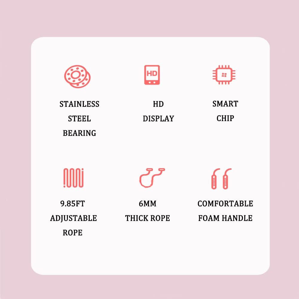Workout Jump Rope With Counter :This smart jump rope can accurate record Jumping times, kilometers and calorie consumption. A small info screen on one handle is present to display your calorie and related data.You can grasp your Jump times, calories burned, to reach your fitness goal .