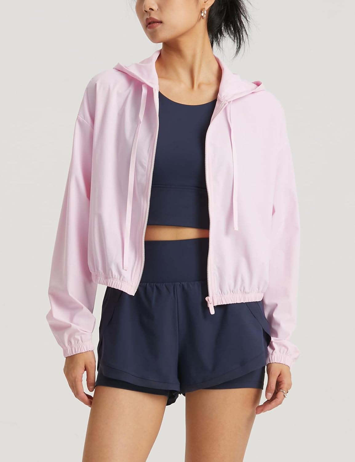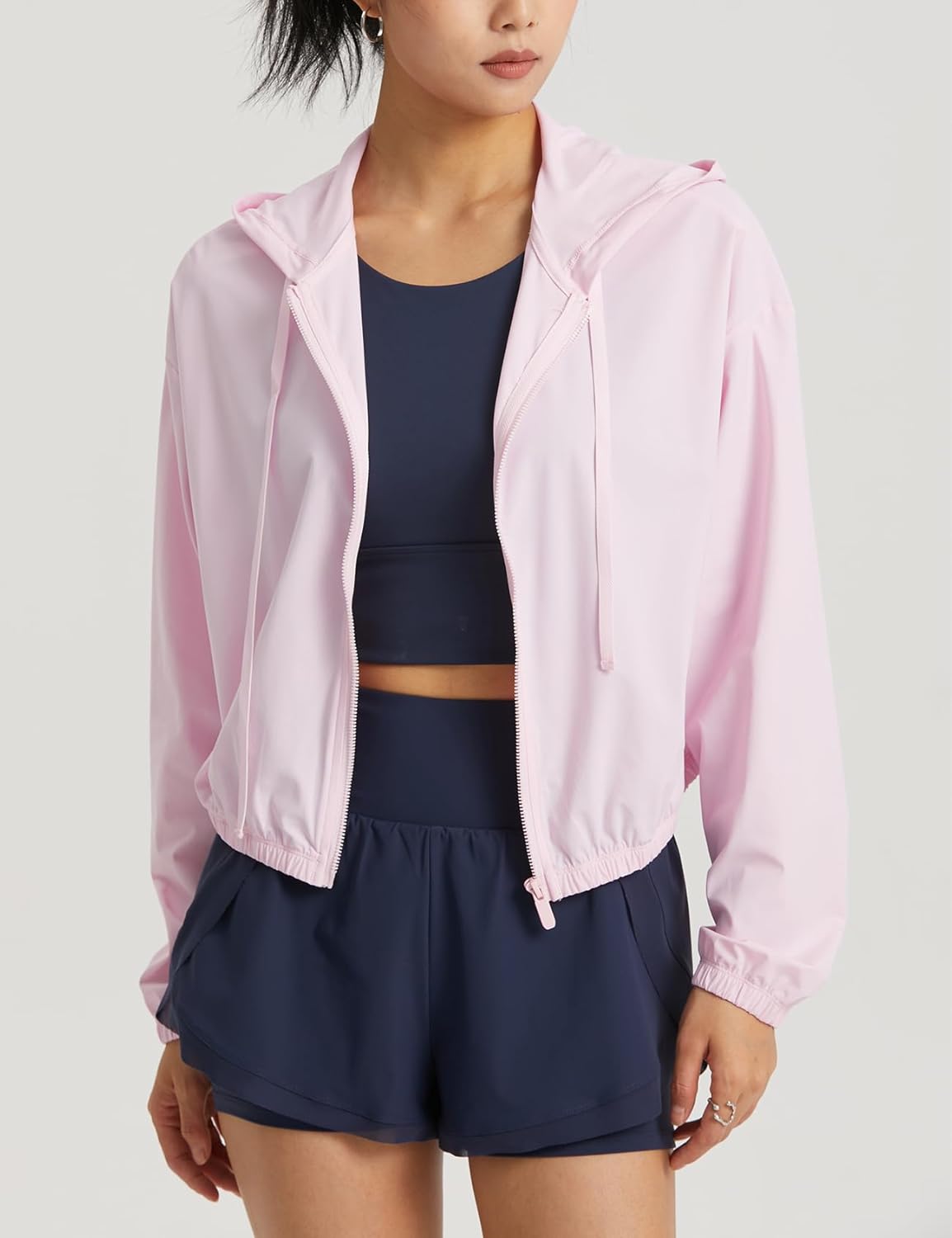 Customers find the jacket lightweight, comfortable, and of good quality, with one noting it’s perfect for their height. They appreciate its sun protection, saying it’s not too hot to wear, and one customer mentions it’s ideal for outdoor activities. The fit and style receive positive feedback, with one customer specifically praising the crop fit. Opinions about sizing are mixed, with some finding it true to size while others say it’s too large.