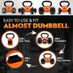 PORTABLE & SPACE SAVING: Compact and sturdy, dumbbell to kettlebell converter is suitable for carrying in most gym bags, making it ideal for any workout space; Dumbbell grips universally compatible feature lets you utilize existing weights and keeps storage tidy